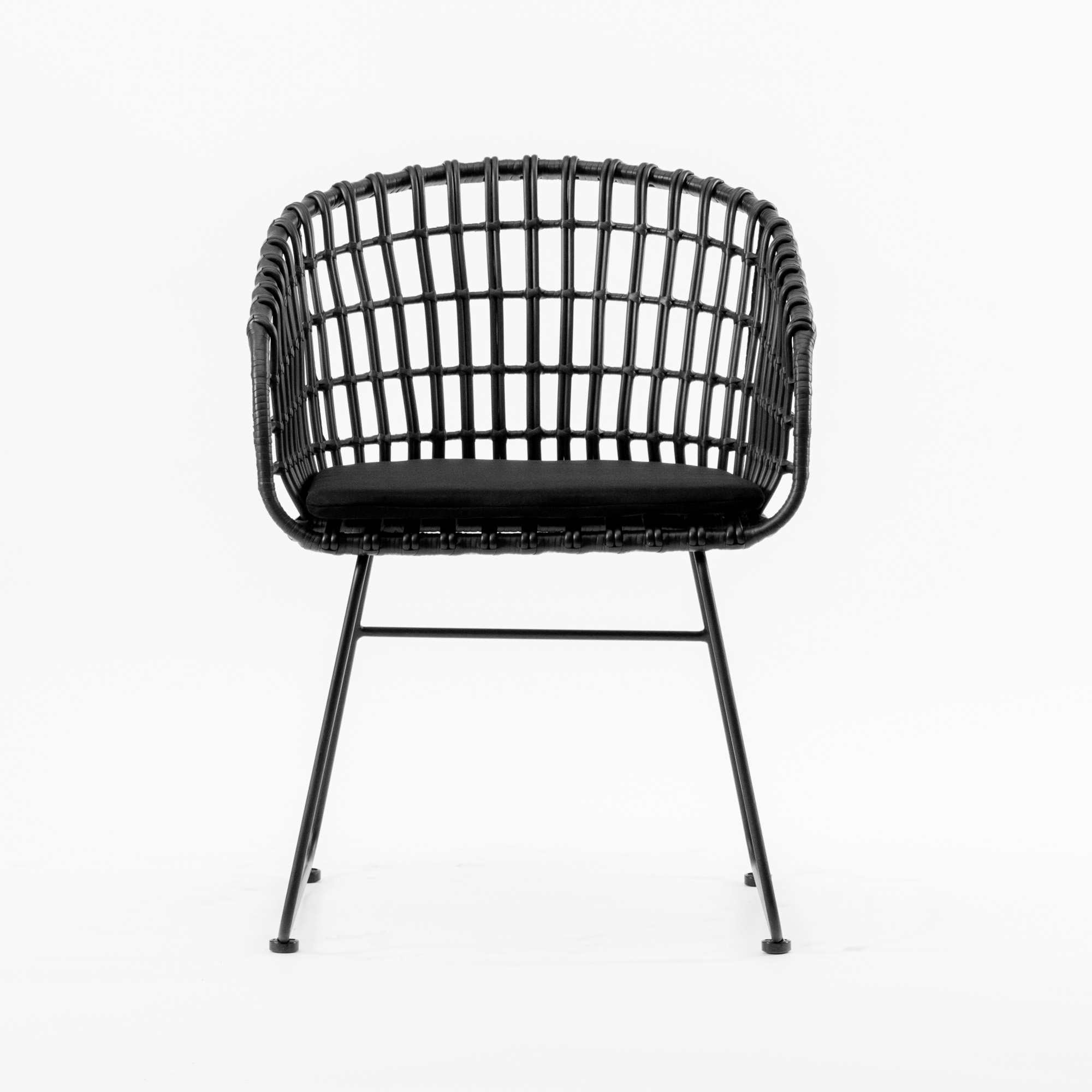 Филигранность достигается благодаря плетеному каркасу из искусственного ротанга, который пропускает пространство сквозь себя. Сочетается с другими предметами интерьера.