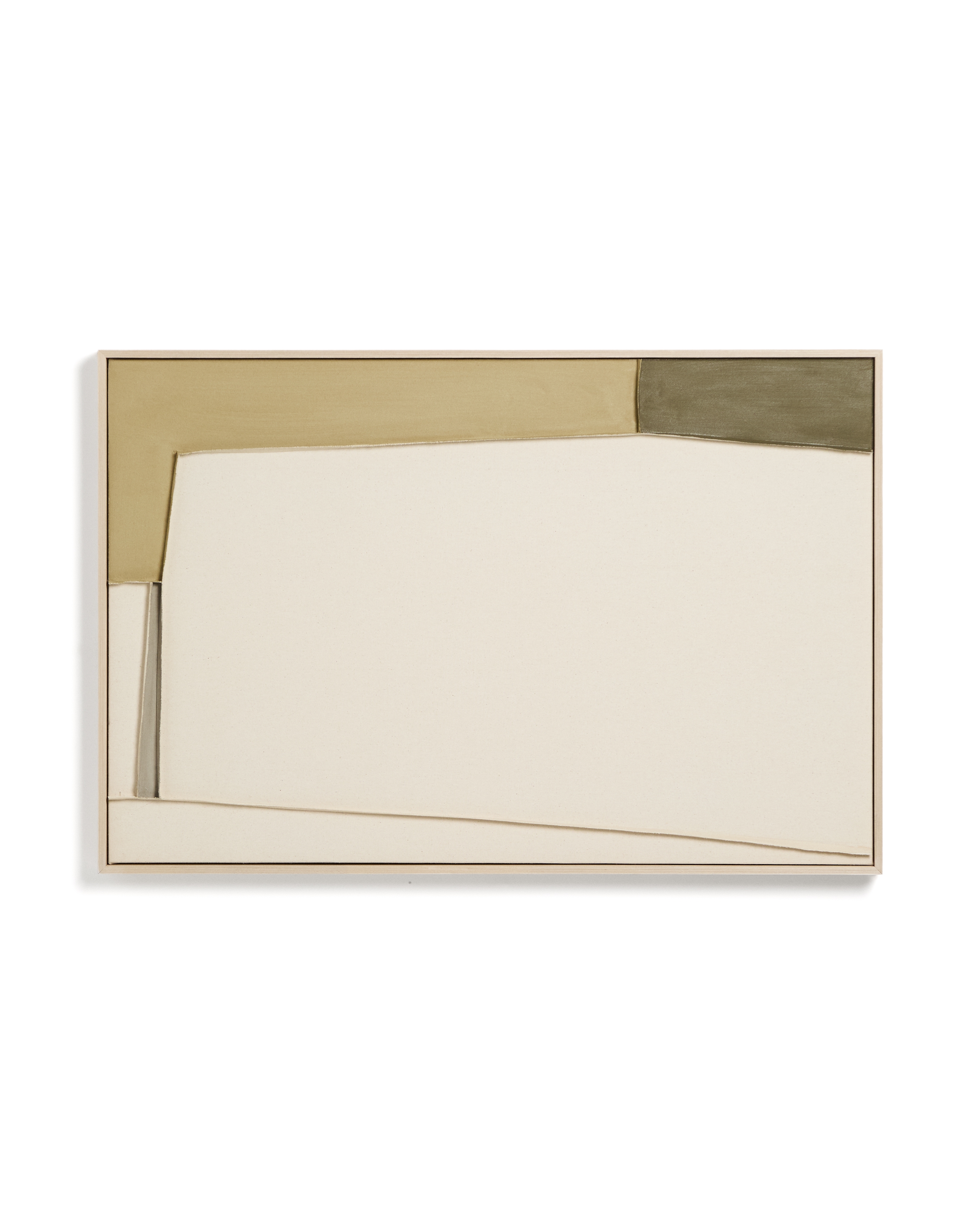 Коллекция Deravia представляет собой абстрактные картины, в которых рельефы, выполненные в технике льняной вышивки, сочетаются с палитрой мягких зеленых и нейтральных тонов. Эти цвета вводят цветовые нюансы, не нарушая баланса всей композиции, и привносят в пространство ощущение спокойствия.