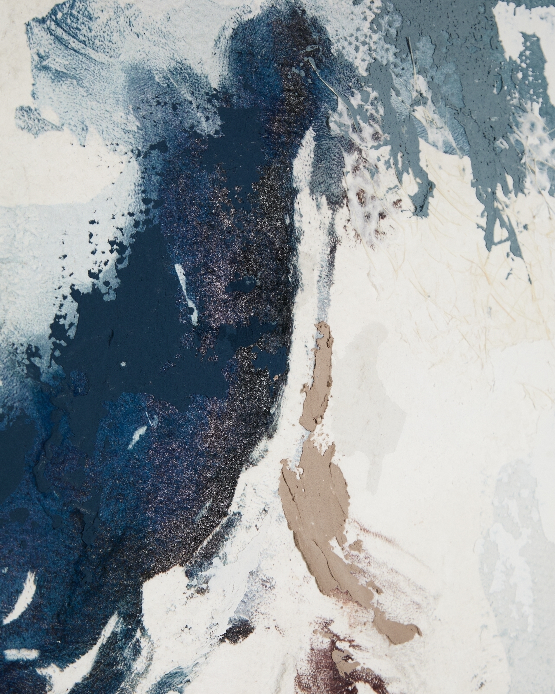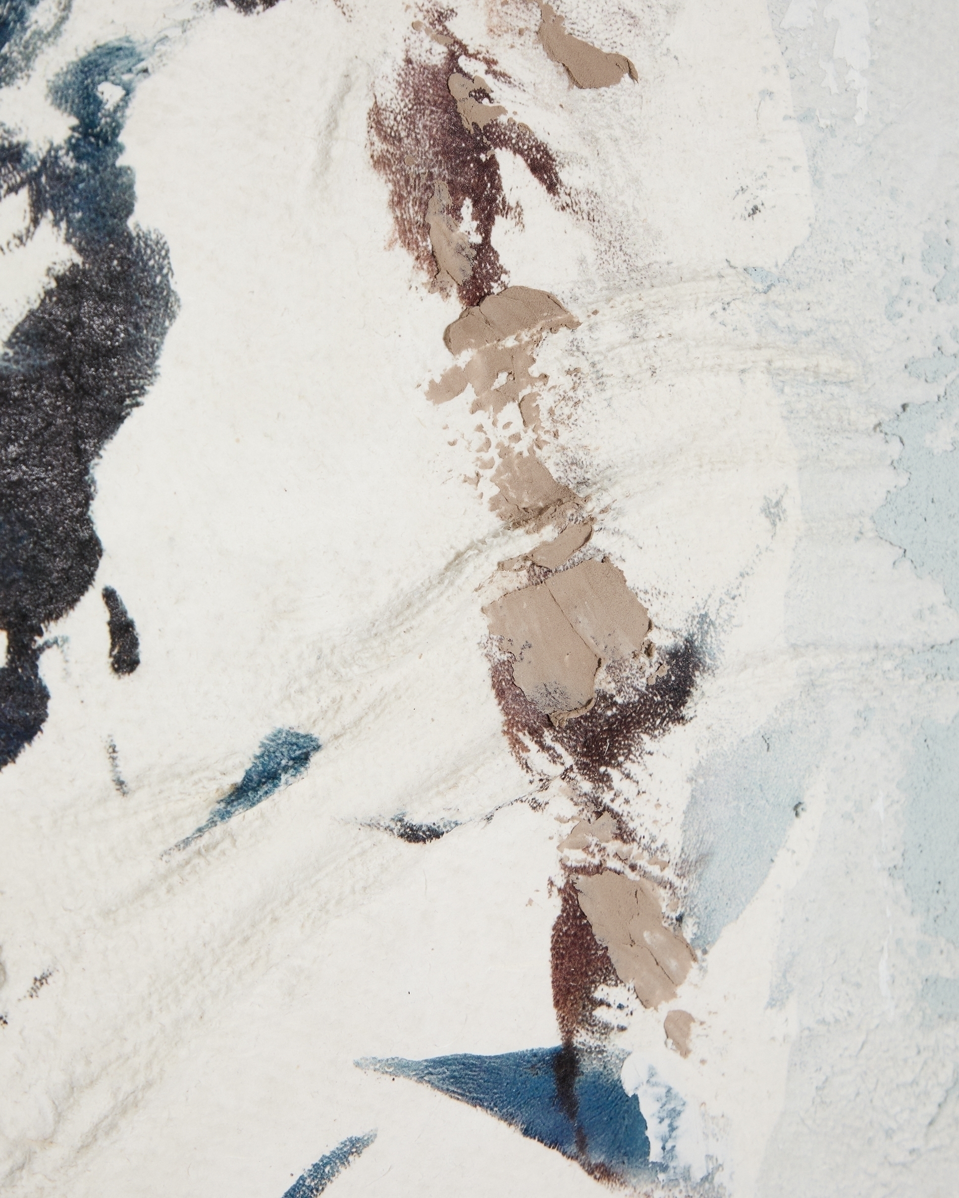 Картина «Эрале» сочетает в себе оттенки серого и синего в абстрактной композиции, которая выделяется различными текстурами, проходящими по ее поверхности. Мазки перекрываются нерегулярно, создавая произведение с визуальной глубиной и спокойным характером.
