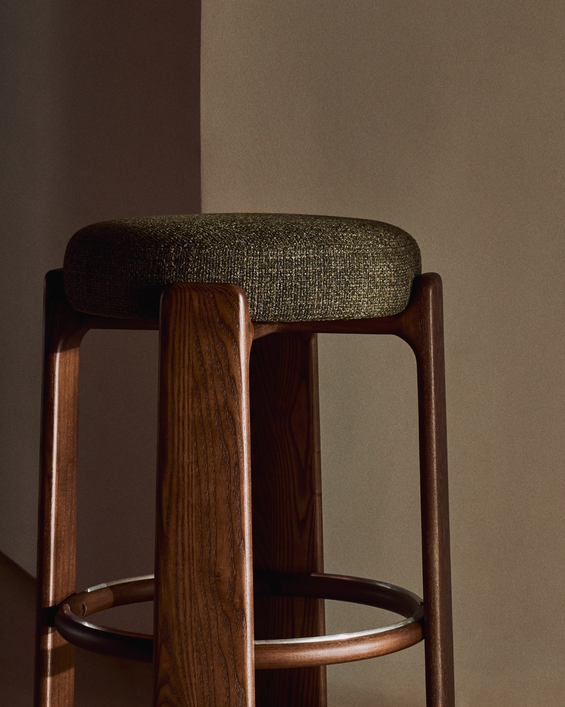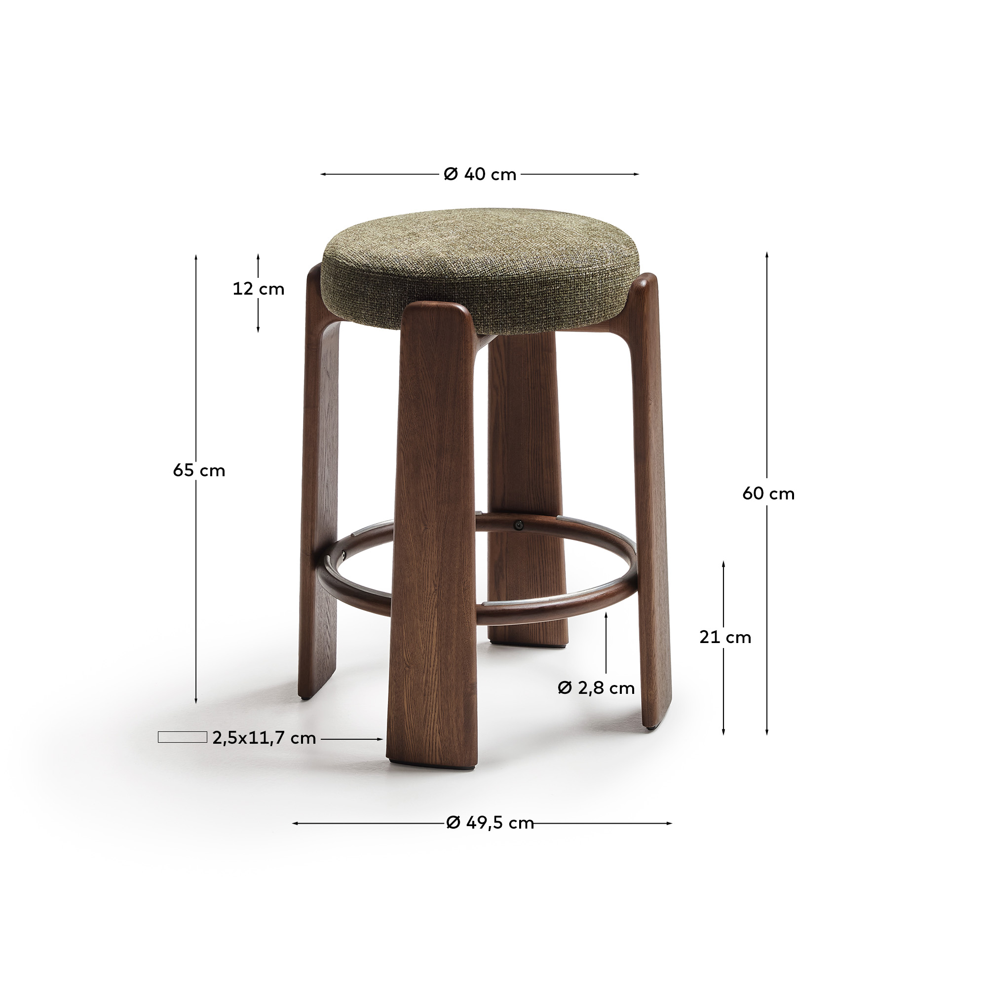 Granite Полубарный табурет из зеленого шенилла и массива ясеня в отделке орех 65 см арт. 420257