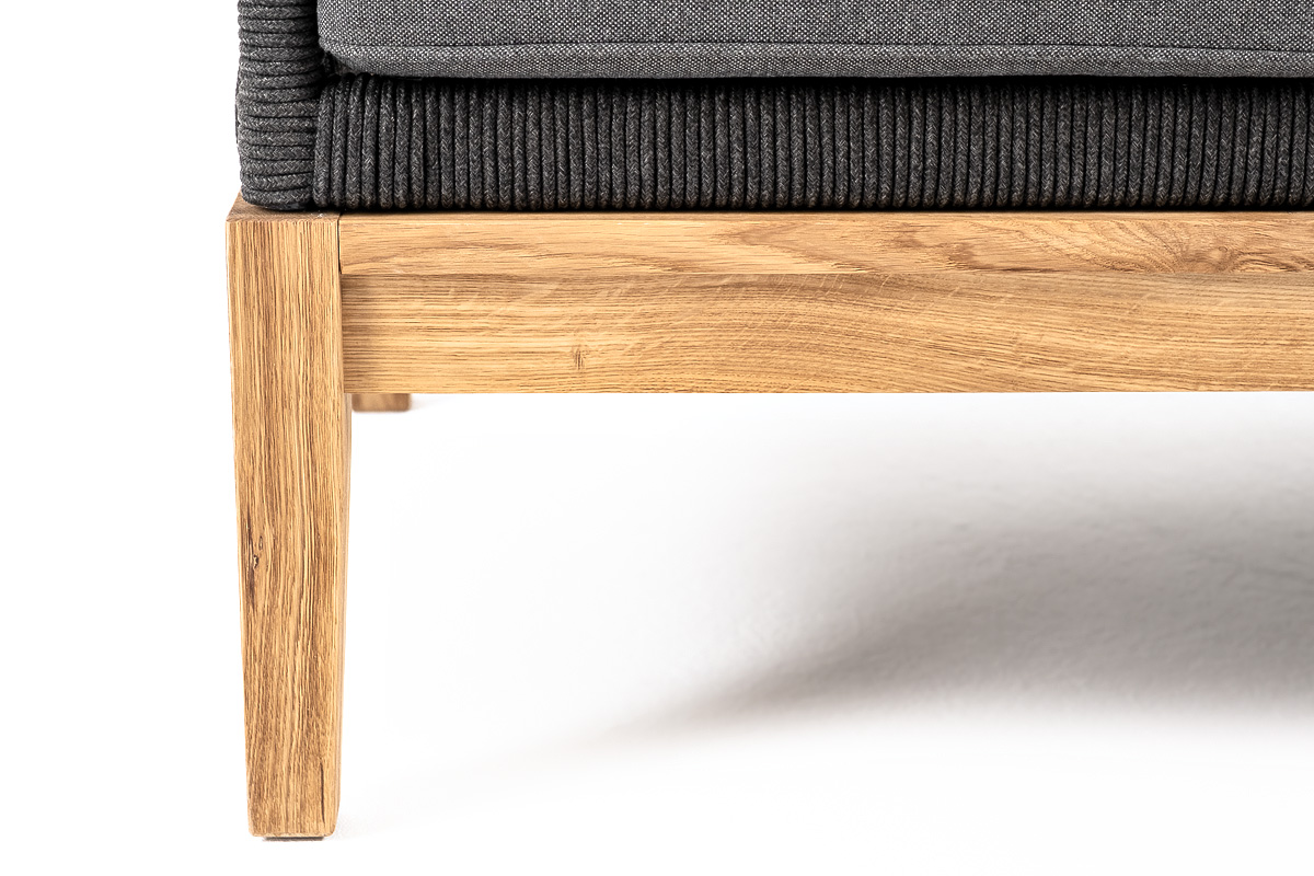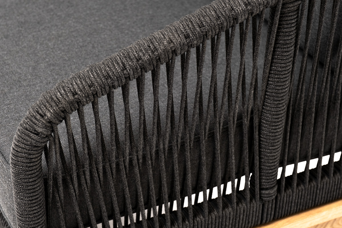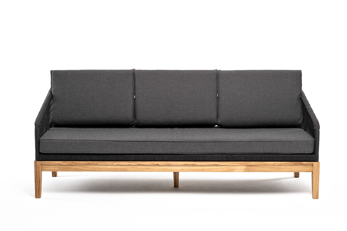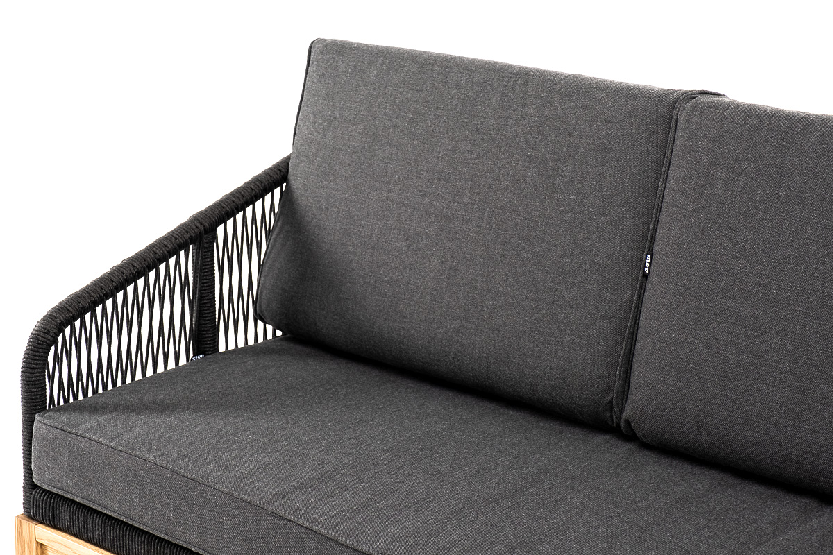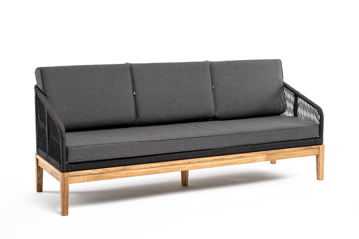 Канны диван 3-местный плетеный из роупа, основание дуб, роуп темно-серый круглый, ткань темно-серая 027 со скидкой 5% арт. KAN-S-3-T002 D-grey(D-gray027)