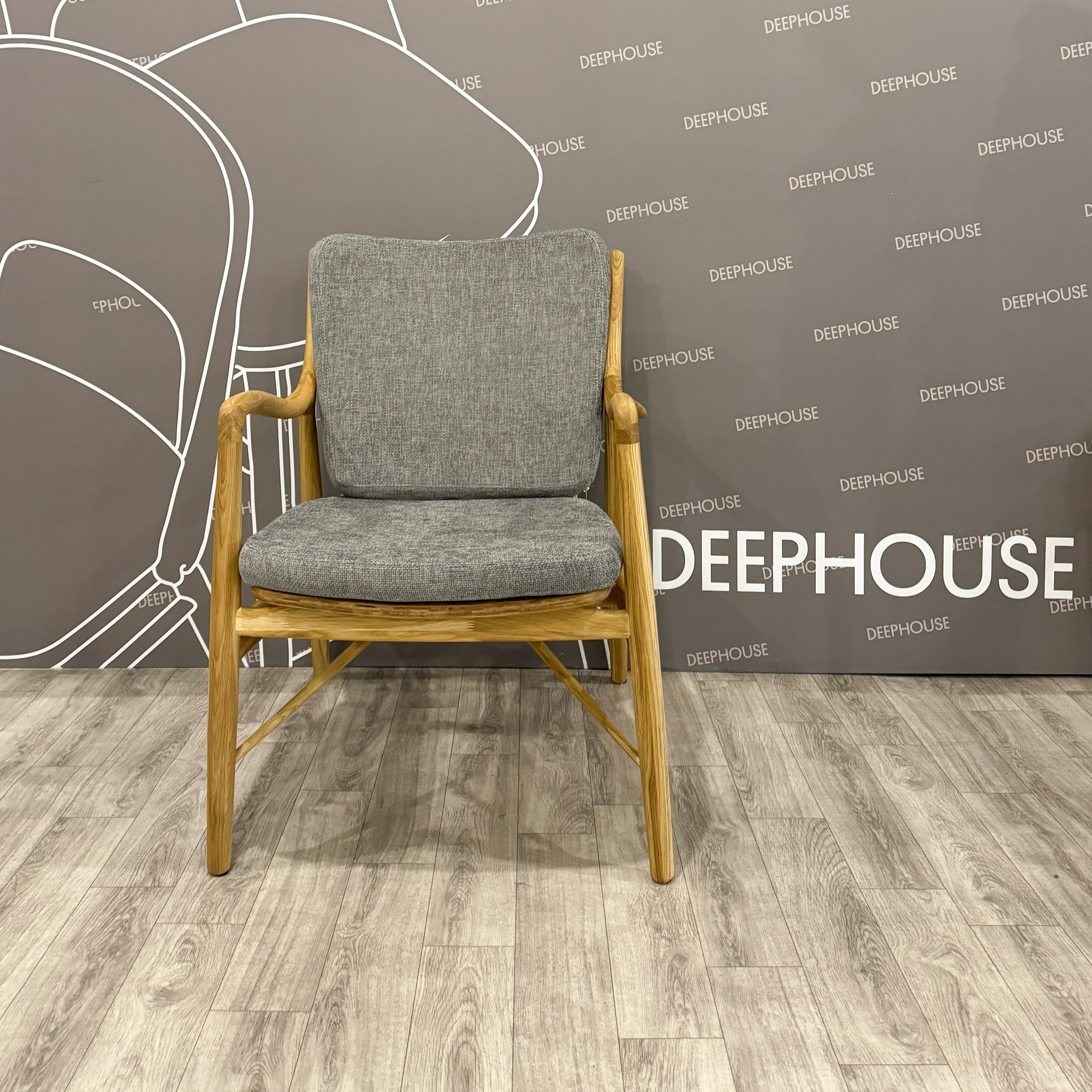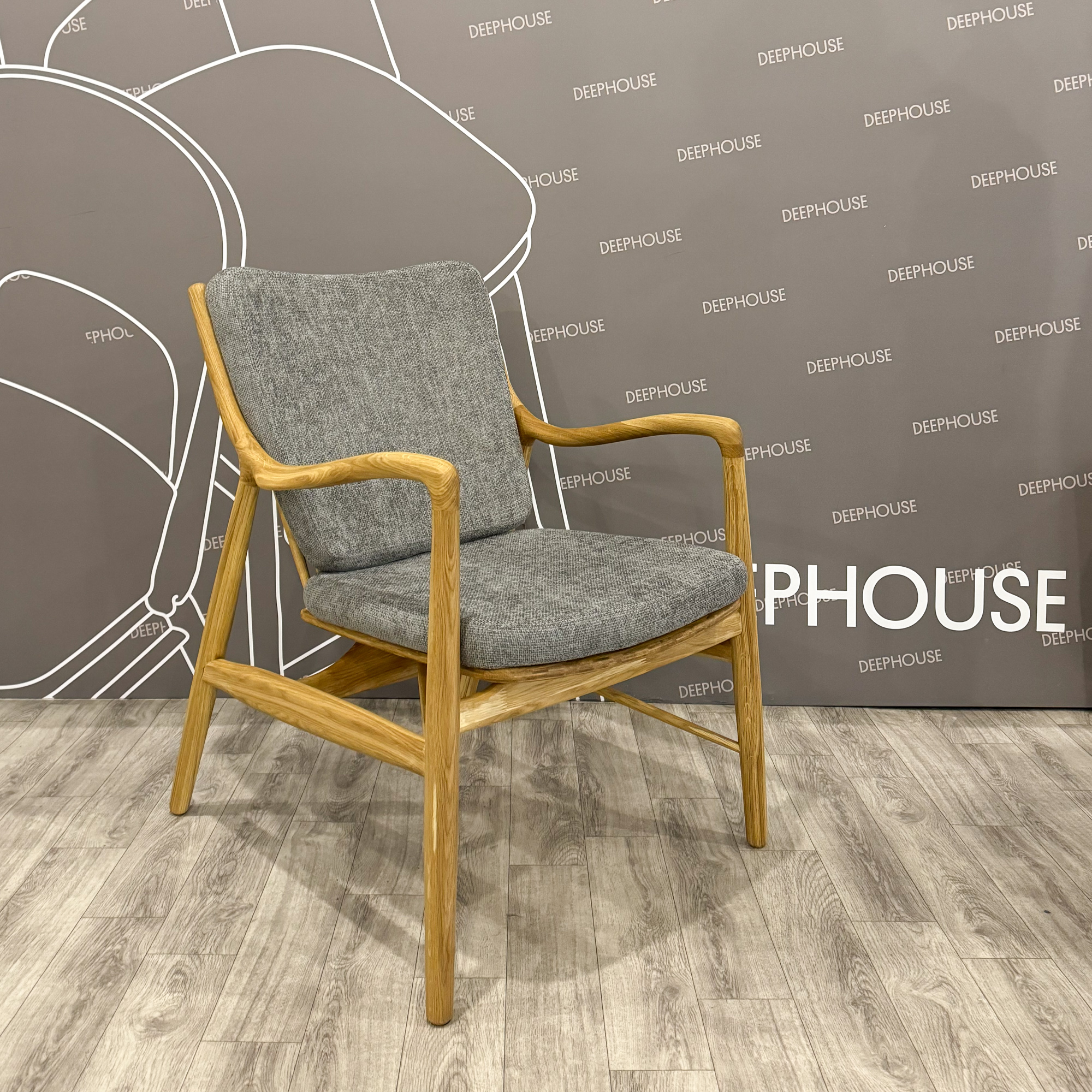 Кресло Ольборг серая ткань дуб тон натуральный (бесцветный матовый) арт. 59997