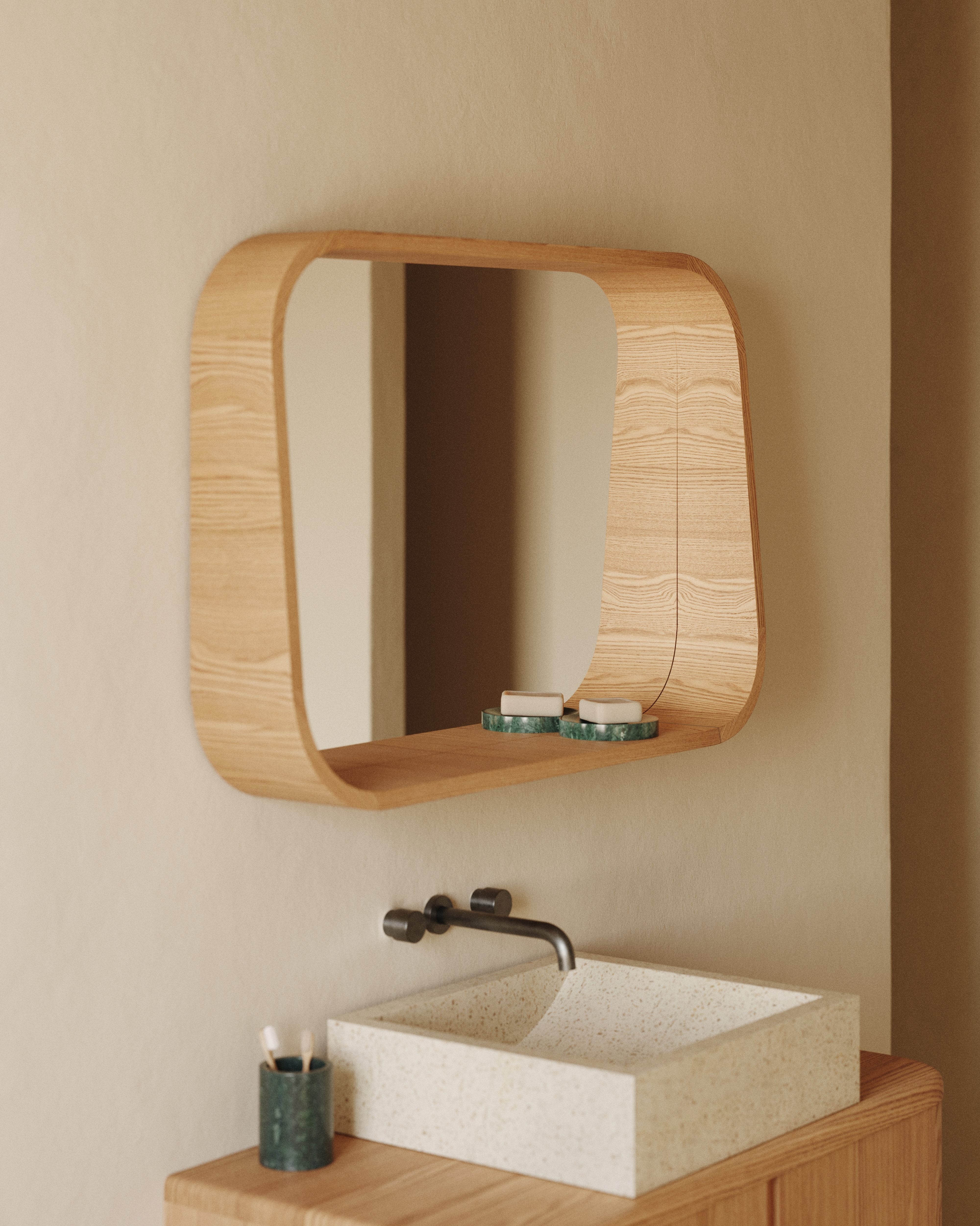 Salaya Зеркало в раме из ламинированной фанеры ясеня в натуральной отделке, 90 x 60 арт. 208189