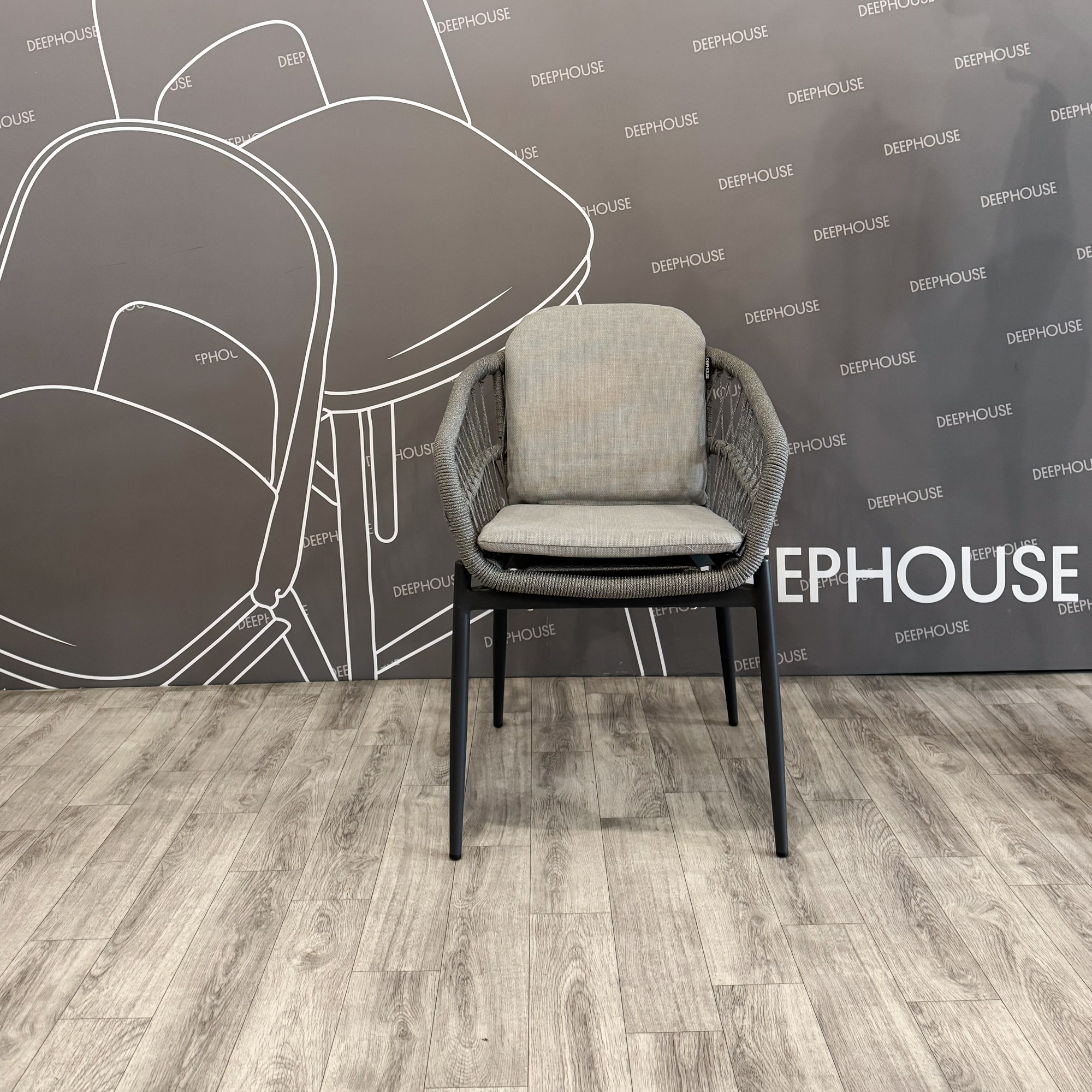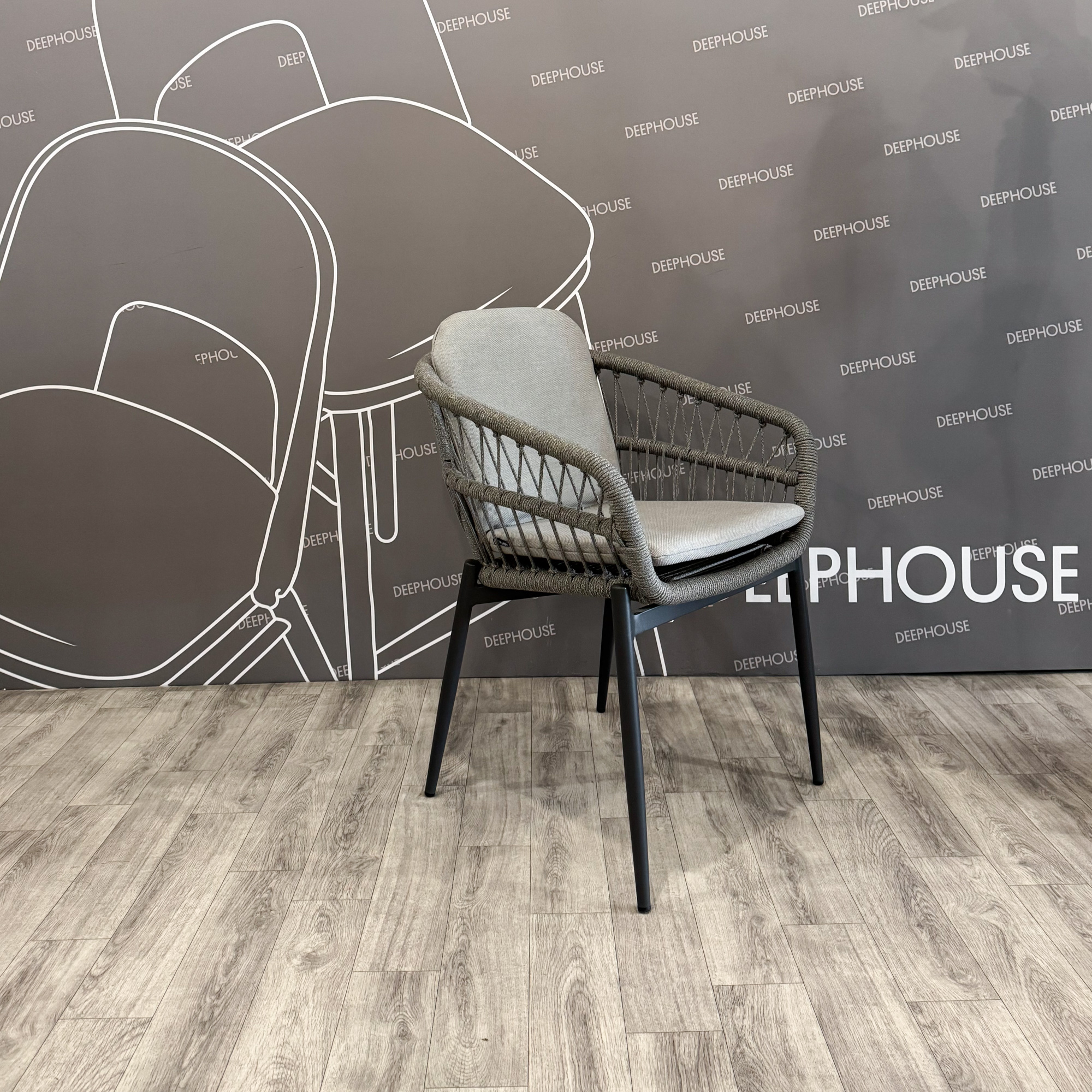 Стул Антигуа плетеный серый подушка серая ножки металл серый арт. 61505