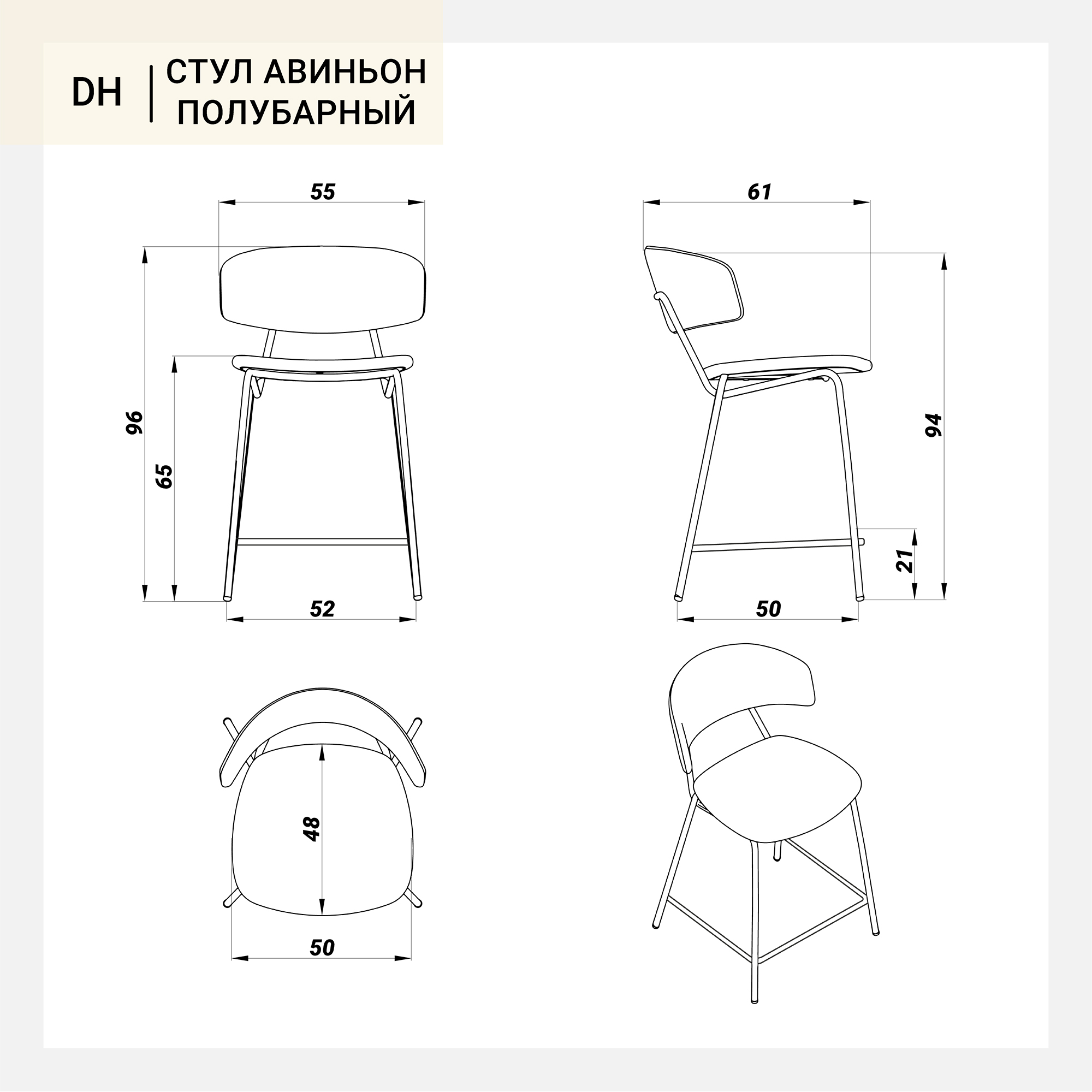 Стул Авиньон полубарный темно-серая ткань ножки металл (черный) арт. 63079