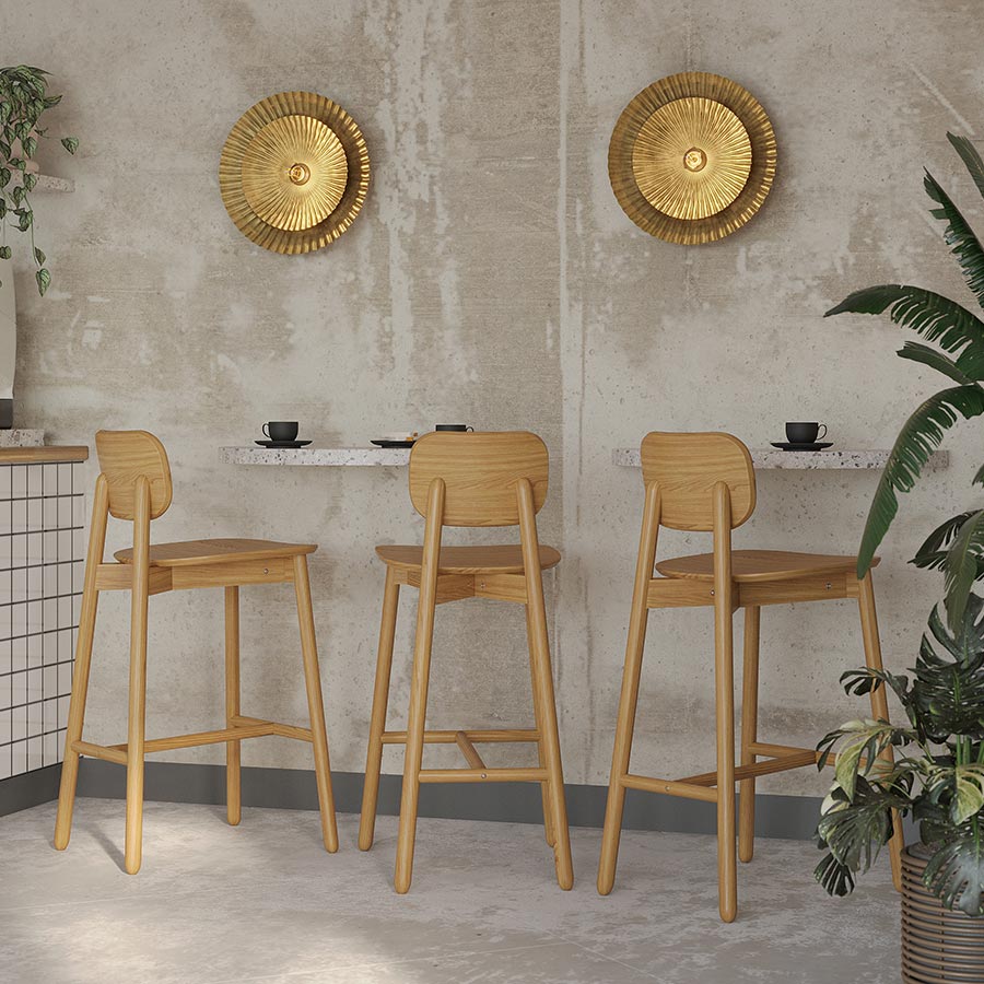 Барный стул выполнен из массива ясеня — прочной древесины, обладающей плотностью и прочностью, сопоставимыми с дубом. Благодаря отличным эксплуатационным характеристикам, это изделие обладает высокой устойчивостью к износу, деформациям и ударам, а также проявляет практичность и экологичность.