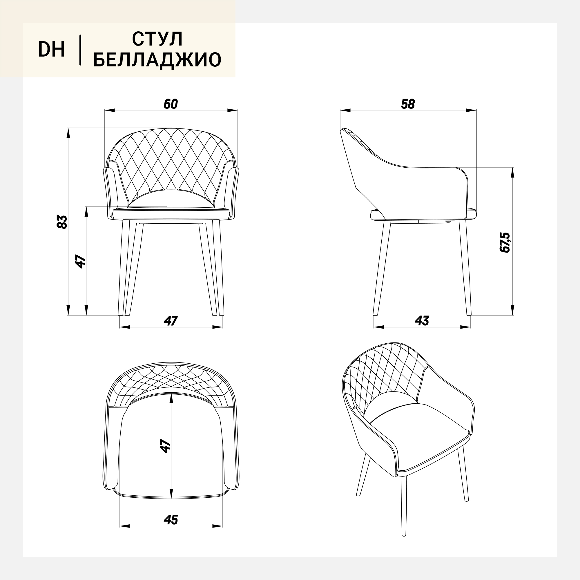 Стул Белладжио от DeepHouse - изысканное сочетание комфорта, красоты, лаконичности и современных дизайнерских решений.Он изготовлен из материалов высокого качества, которые обеспечивают прочность и долговечность мебели.предусмотрены несколько вариантов обивки сиденья: мягкий, приятный эко мех, плотный, фактурный бархат и прочная и нежная ткань. Прочные металлические ножки обеспечивают устойчивость и оснащены специальными накладками для защиты пола. Стул поставляется в разобранном виде, инструкция прилагается. Также доступен для заказа в барном и полубарном варианте.