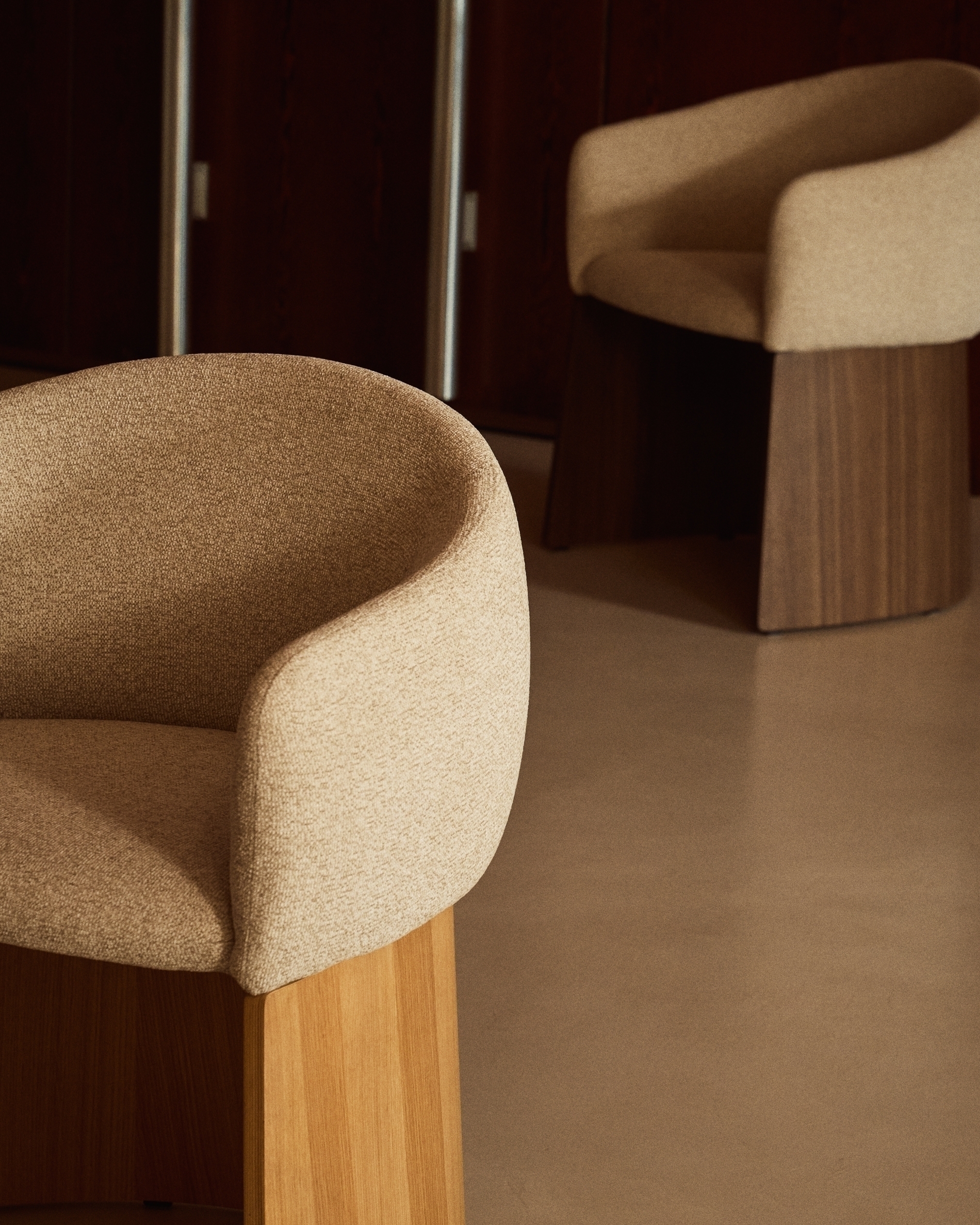 Этот стул выделяется сбалансированным дизайном с широким, удобным сиденьем на деревянном основании, покрытом дубовым шпоном. Матовое полиуретановое покрытие защищает поверхность и придает изделию теплоту.