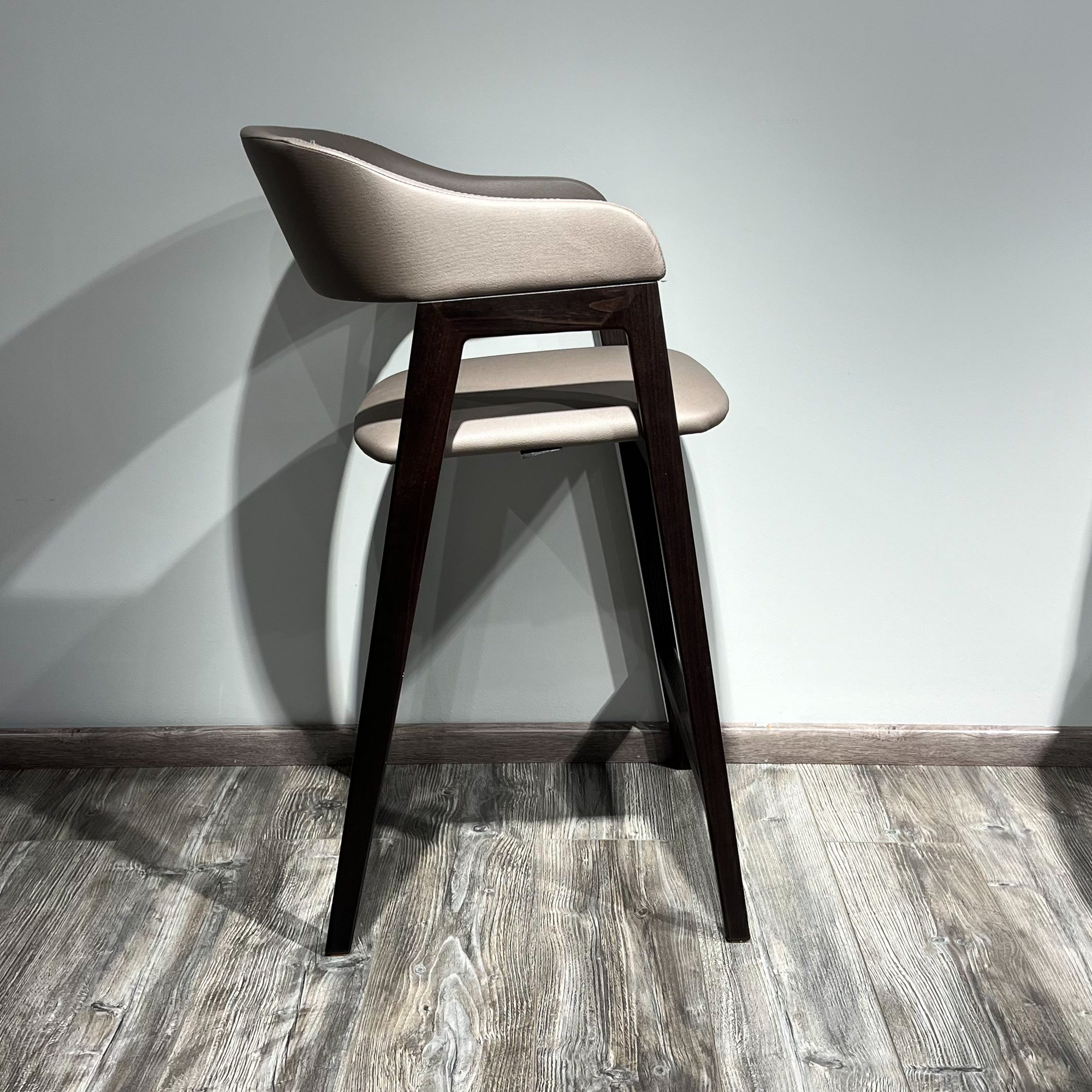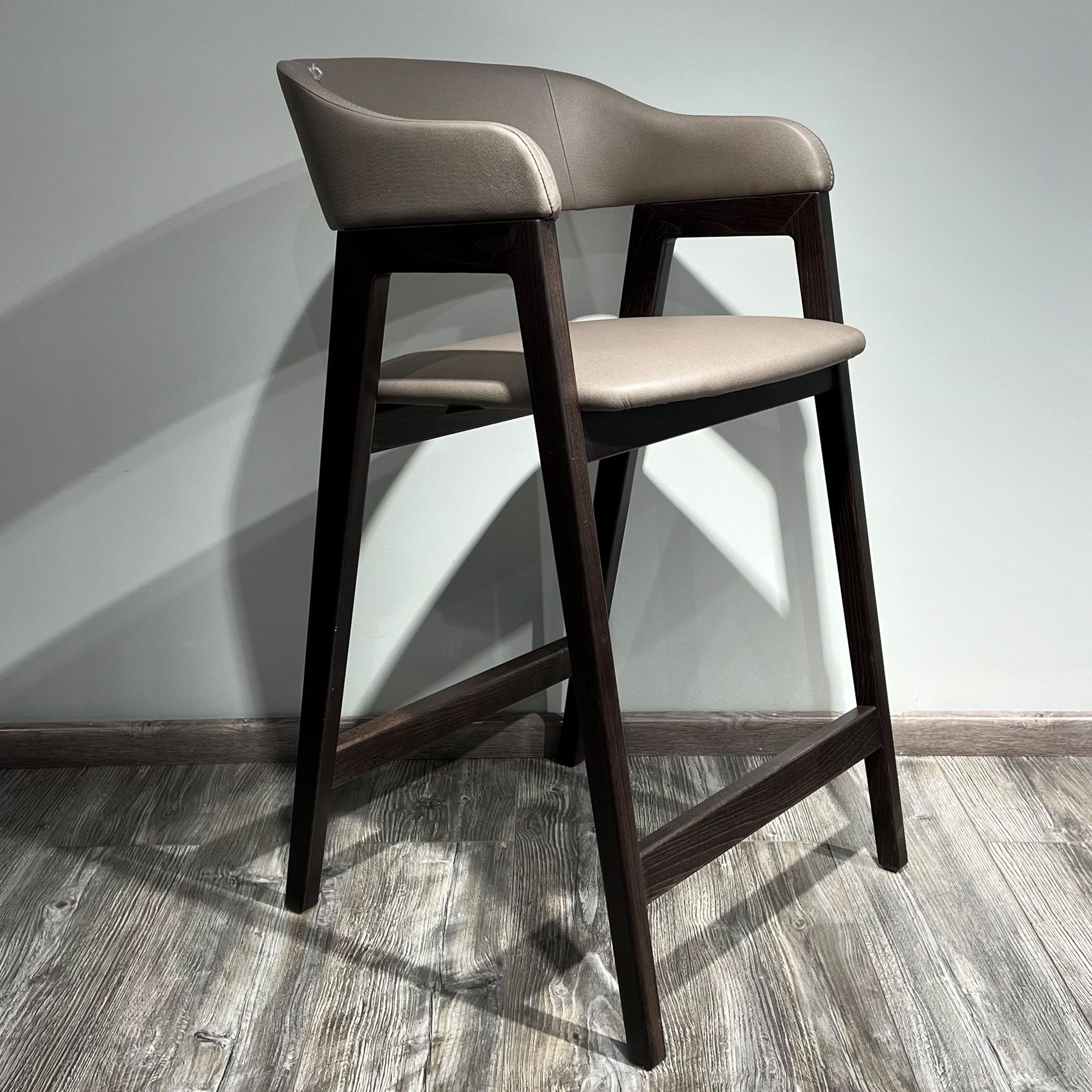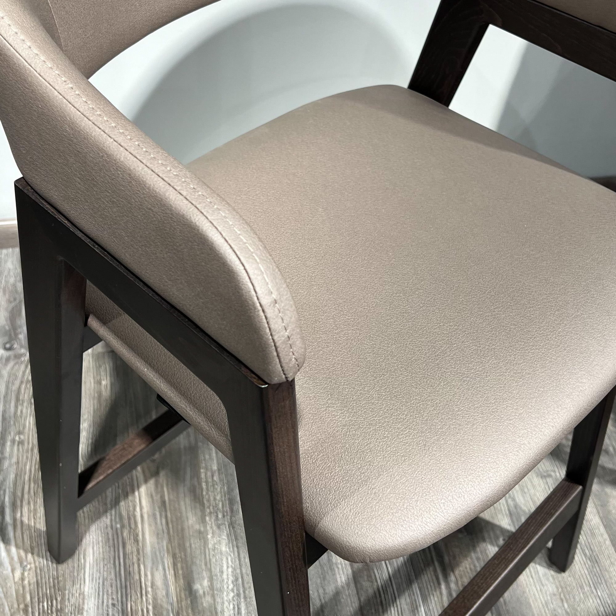 Стул Челси барный серо-коричневая экокожа массив бука (темный орех) высота подлокотников 96 см со скидкой 59% арт. 59856+59845