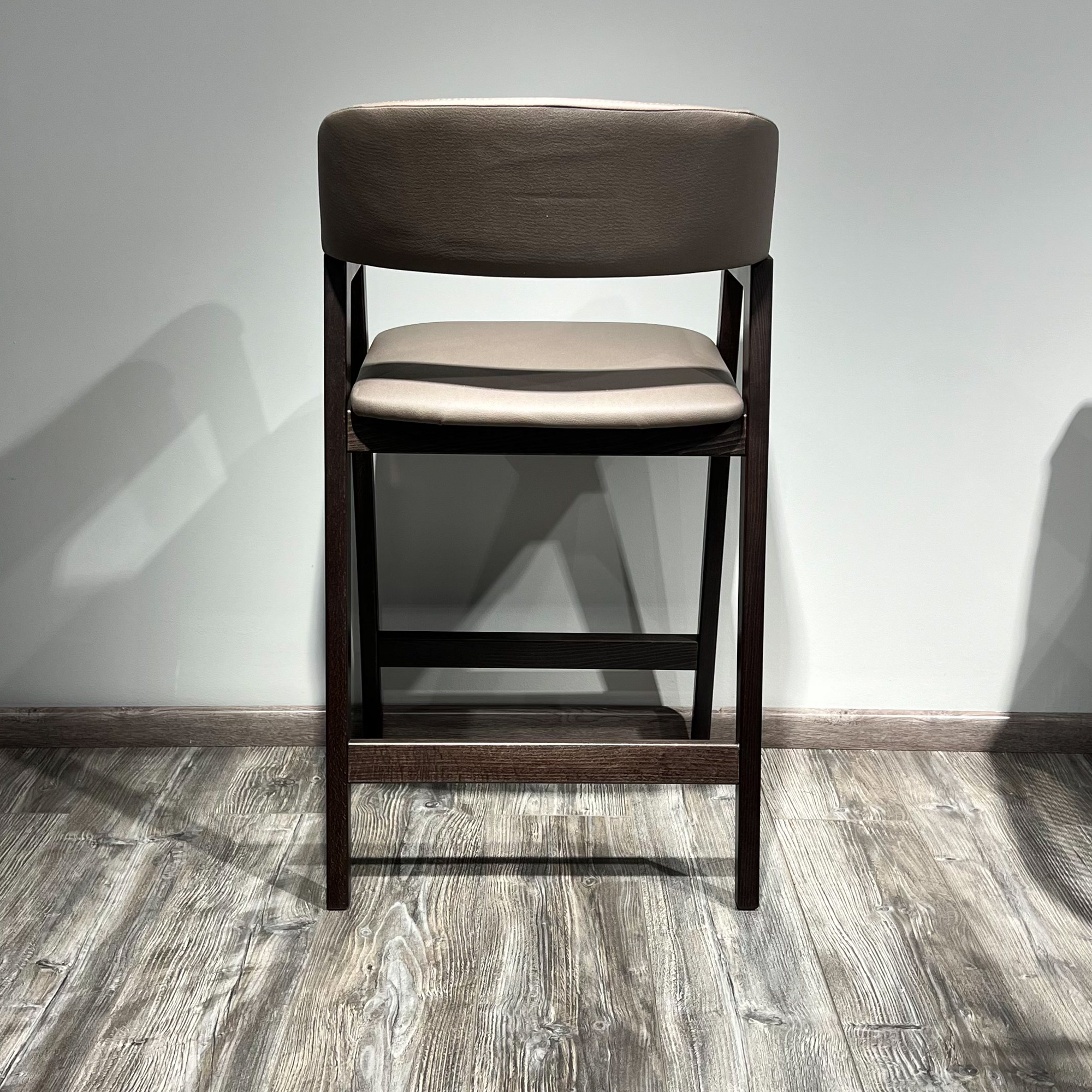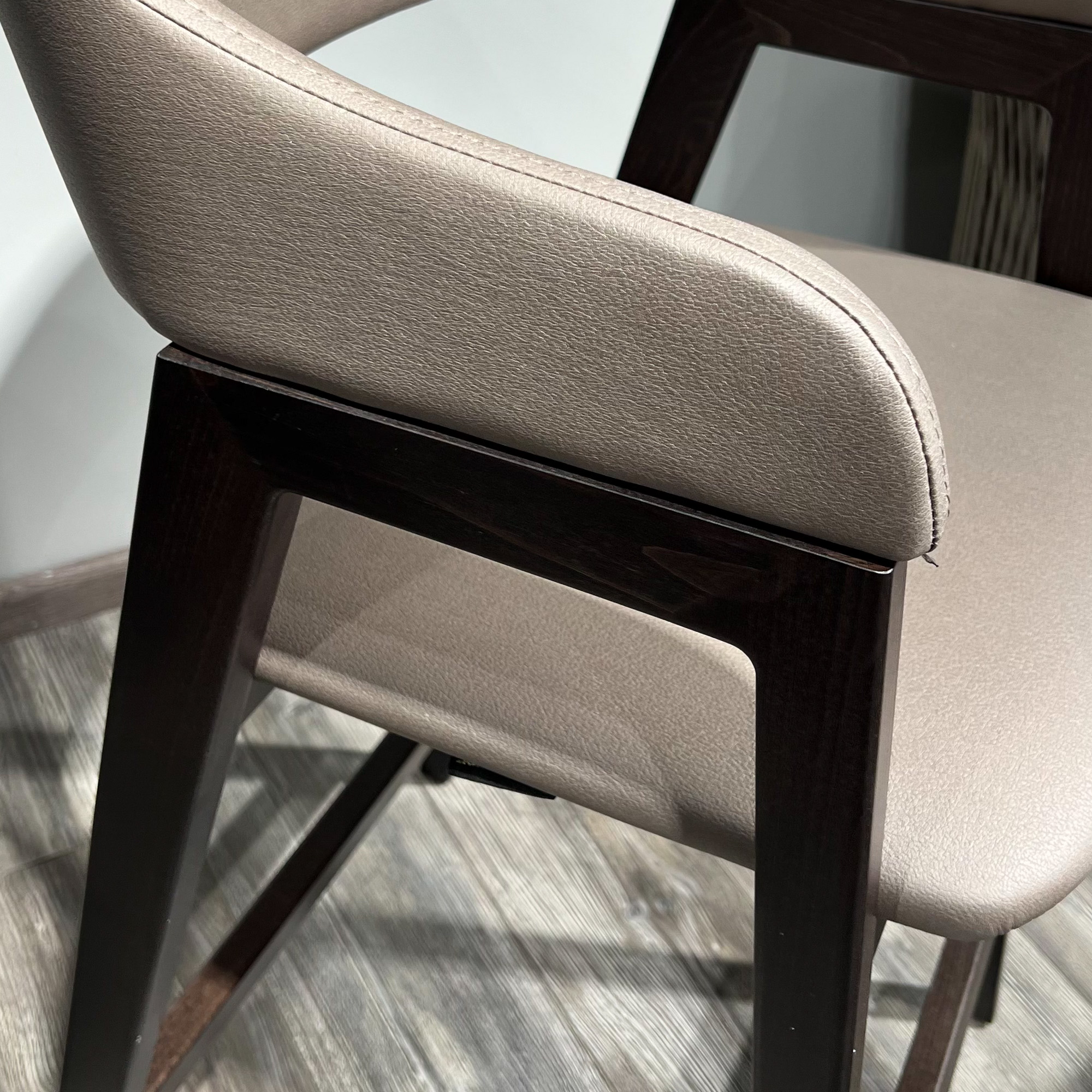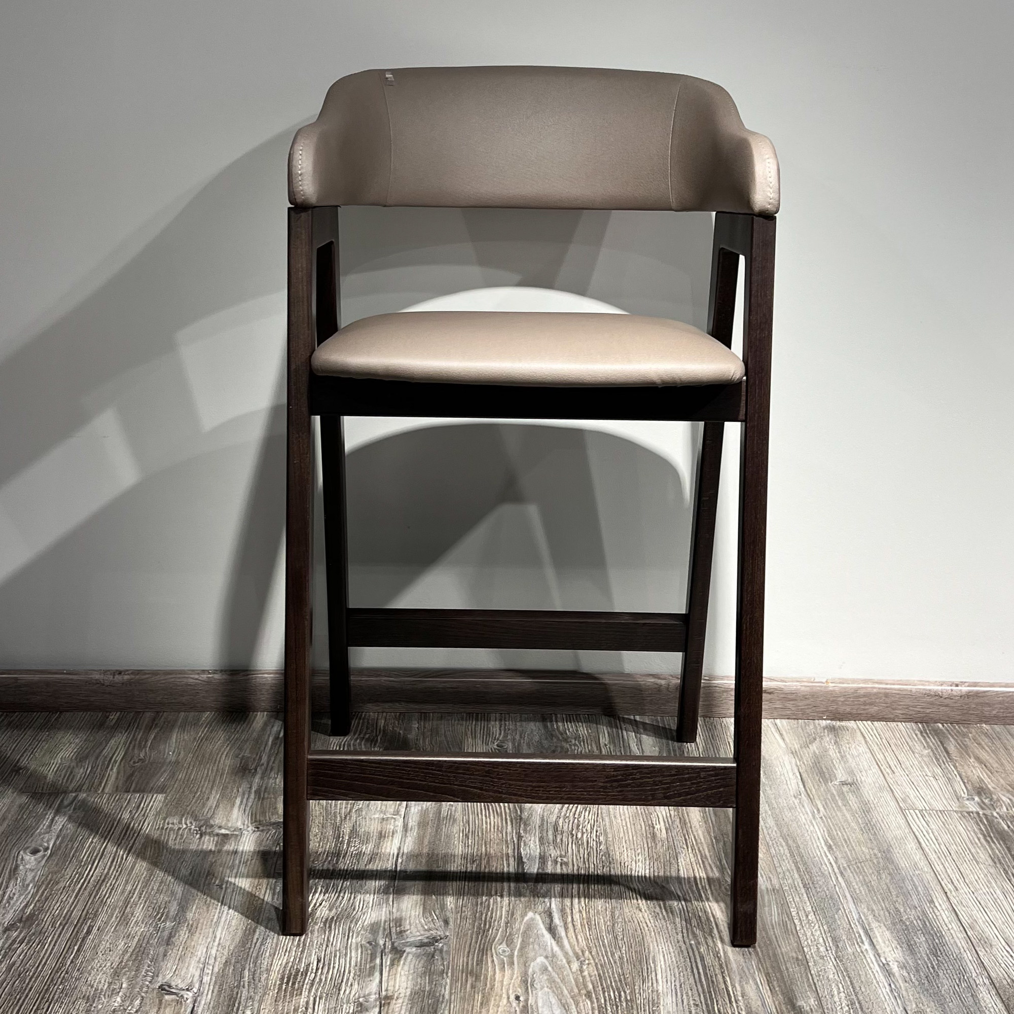 Стул Челси барный серо-коричневая экокожа массив бука (темный орех) высота подлокотников 96 см со скидкой 59% арт. 59856+59845