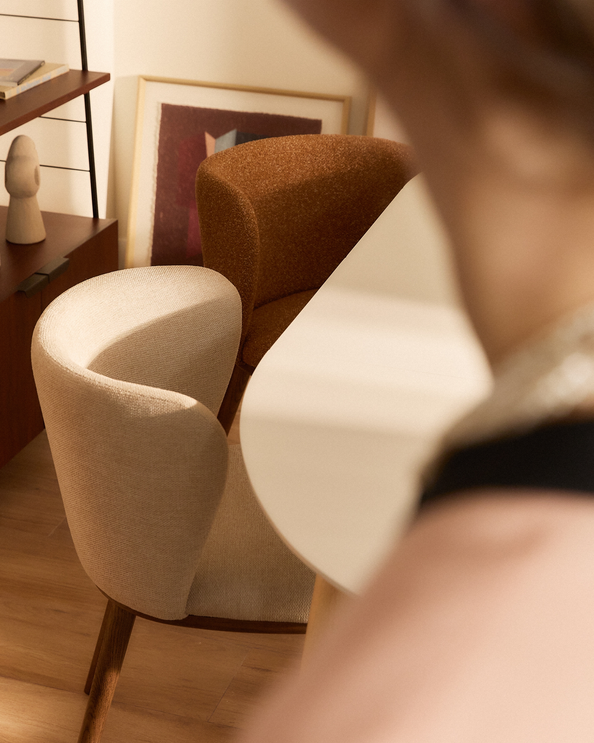 Стул Ciselia из бежевого шенилла с ножками из ясеня в отделке орех арт. 463515