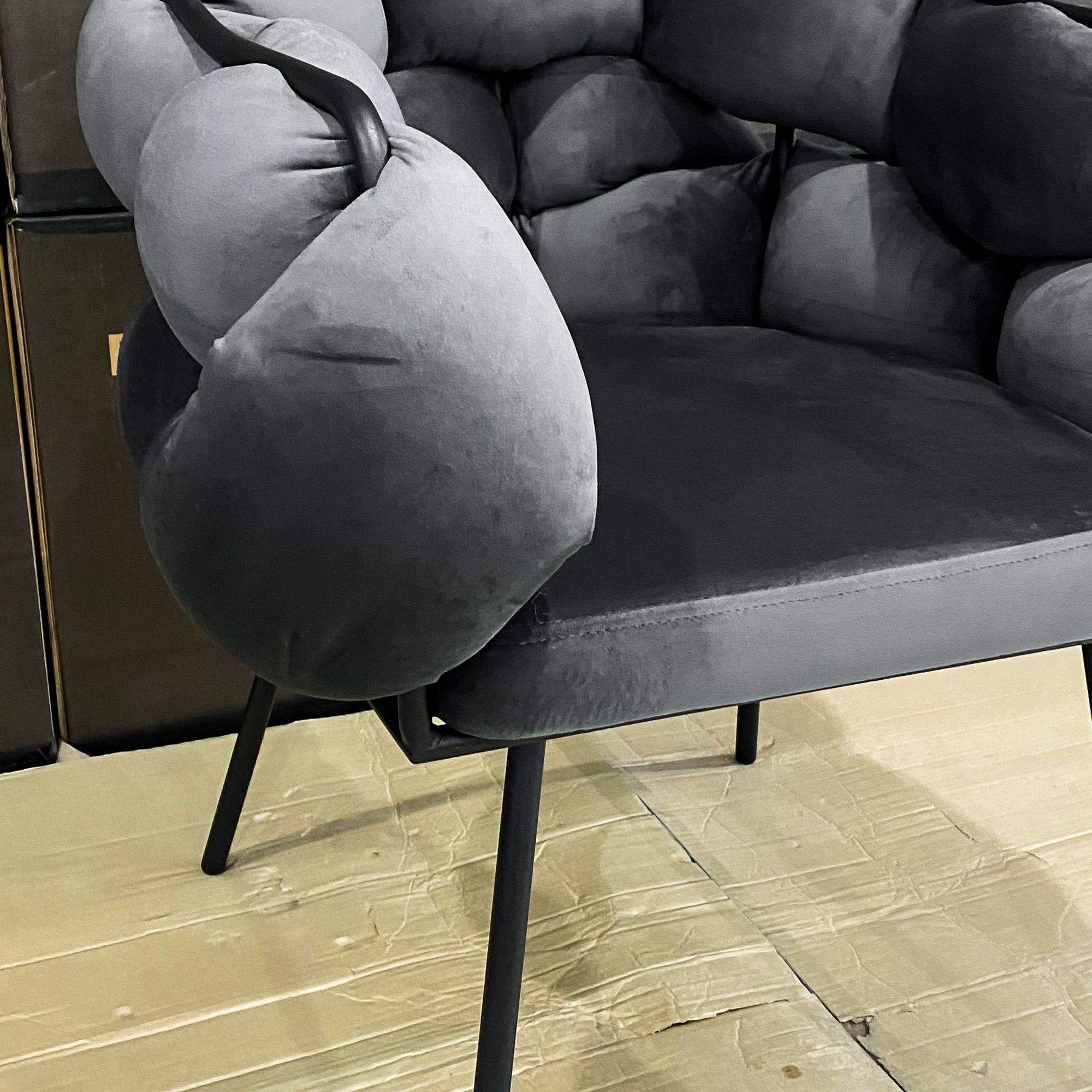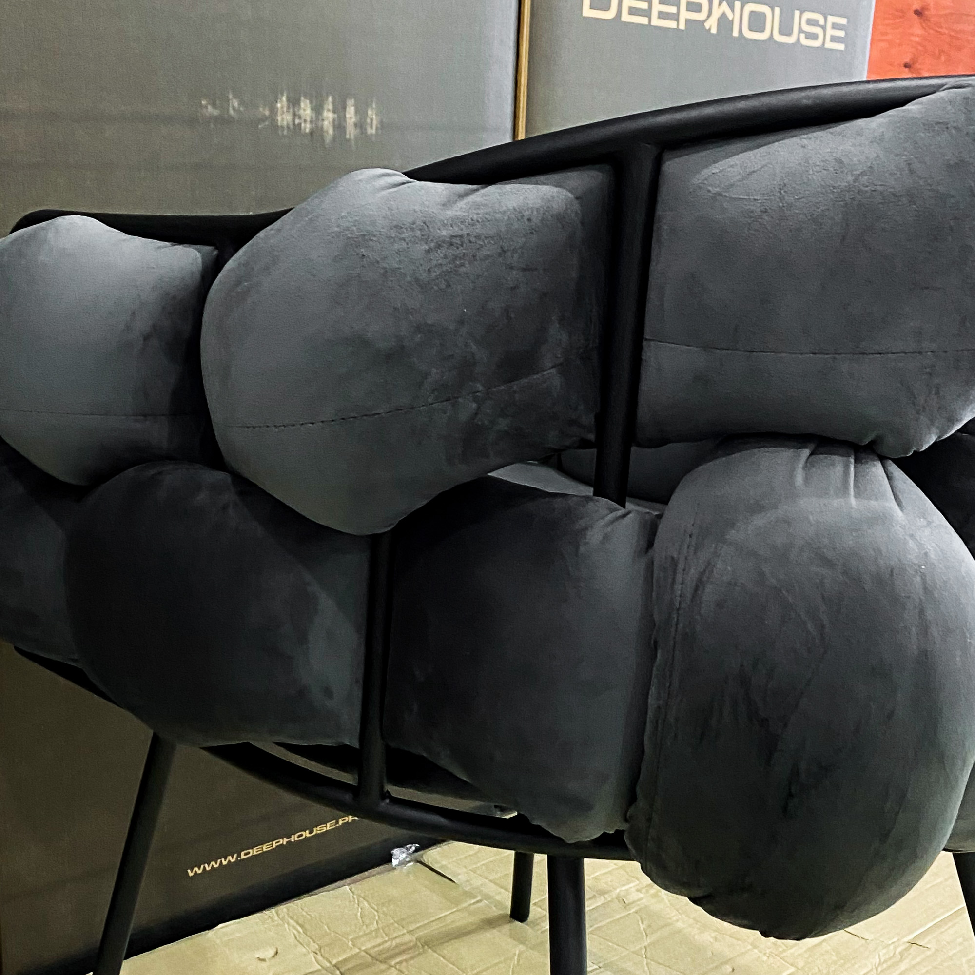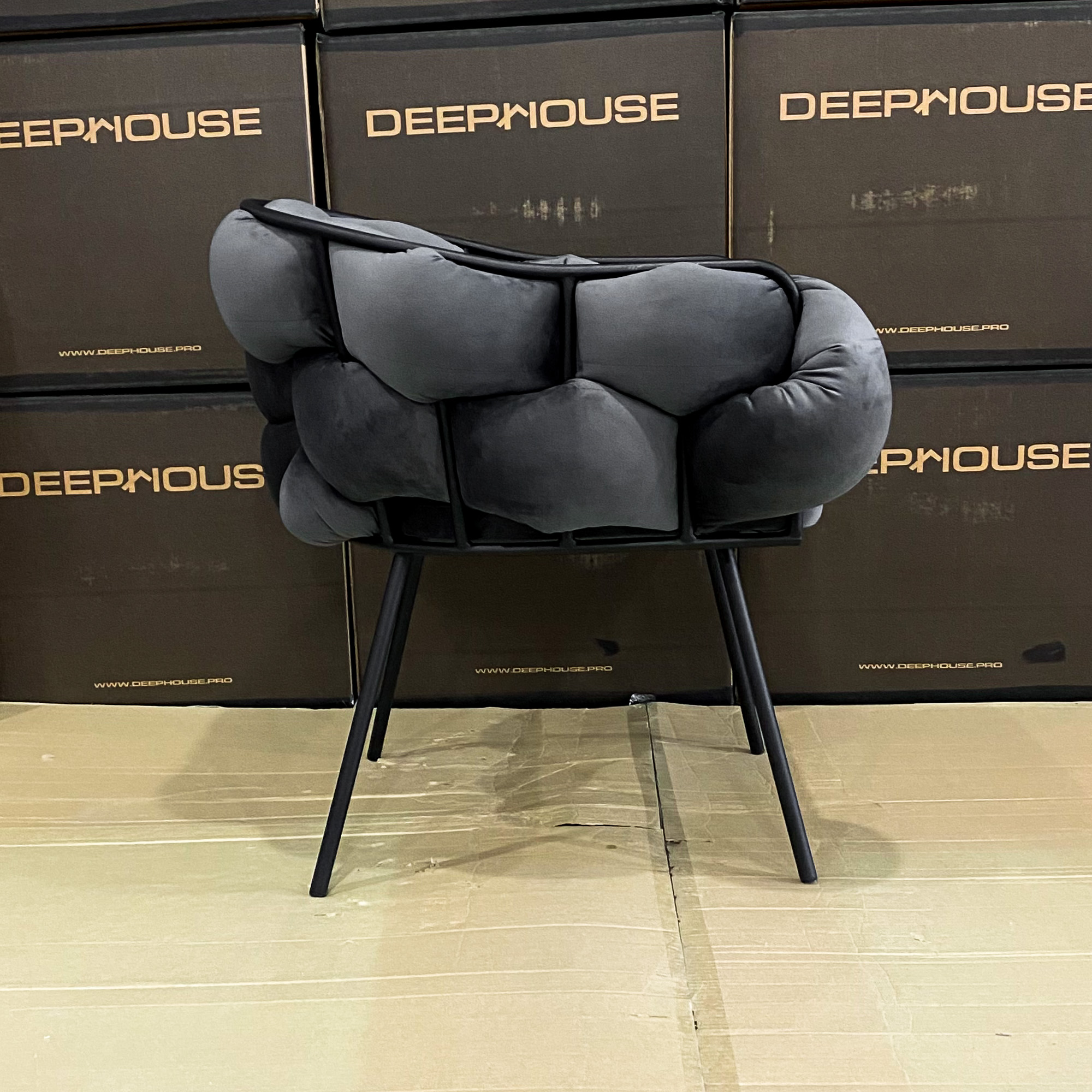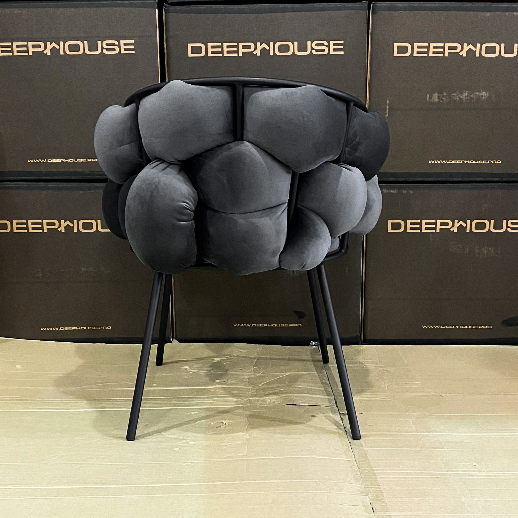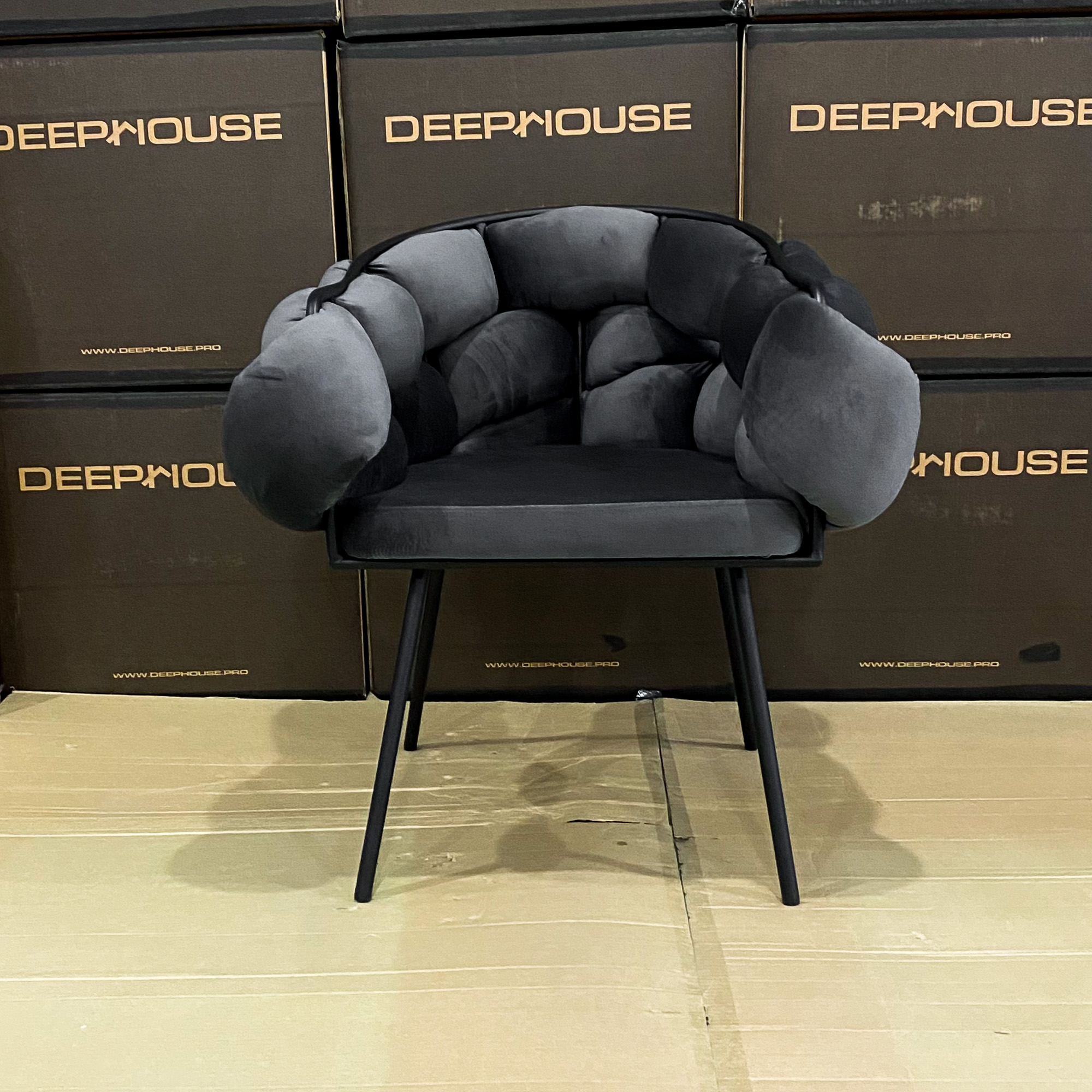 Купить стул фоджа темно-серый бархат ножки черные от магазина DeepHouse можно по