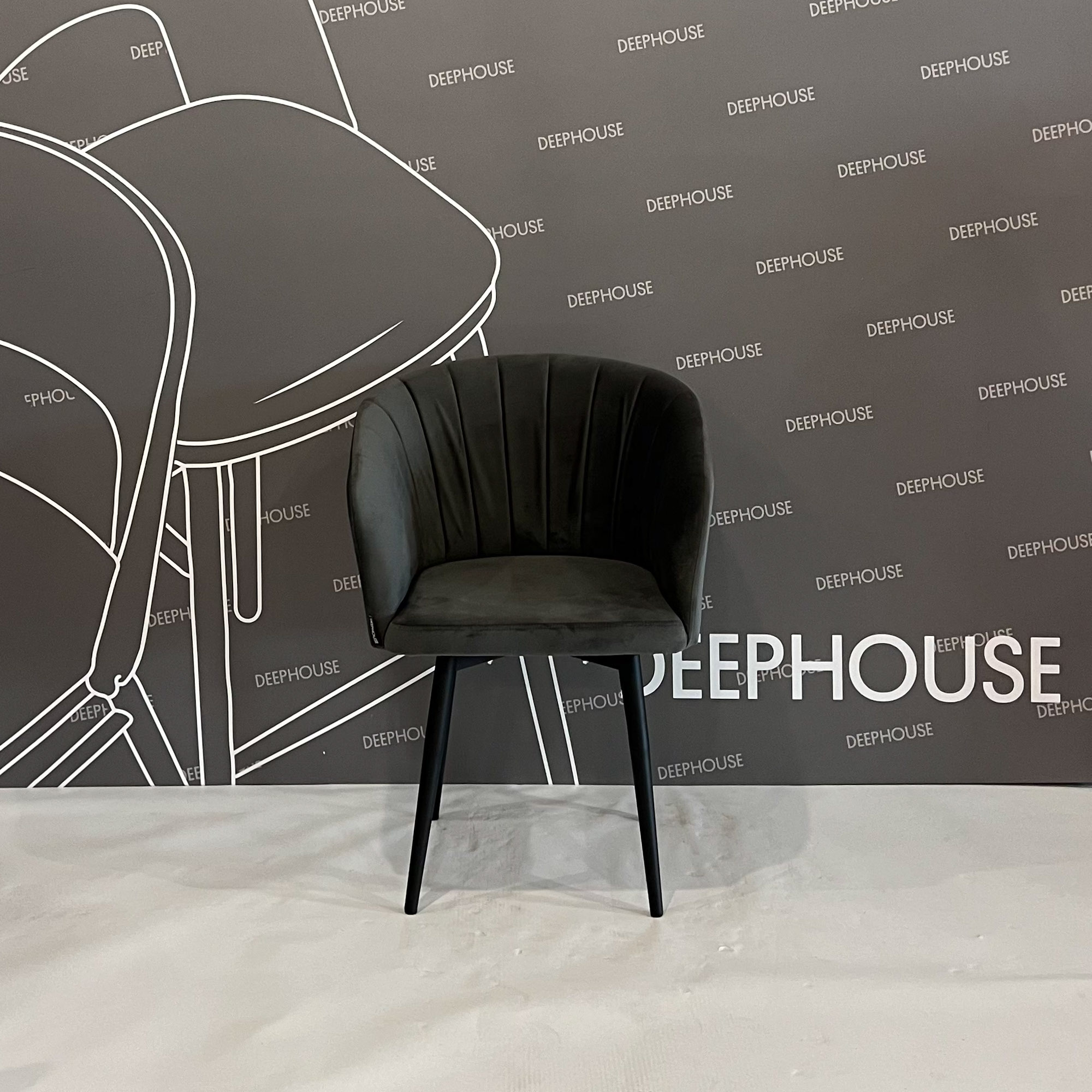 Стул Гарда вращающийся темно-серый бархат ножки черные со скидкой 41% арт. 57833+62395