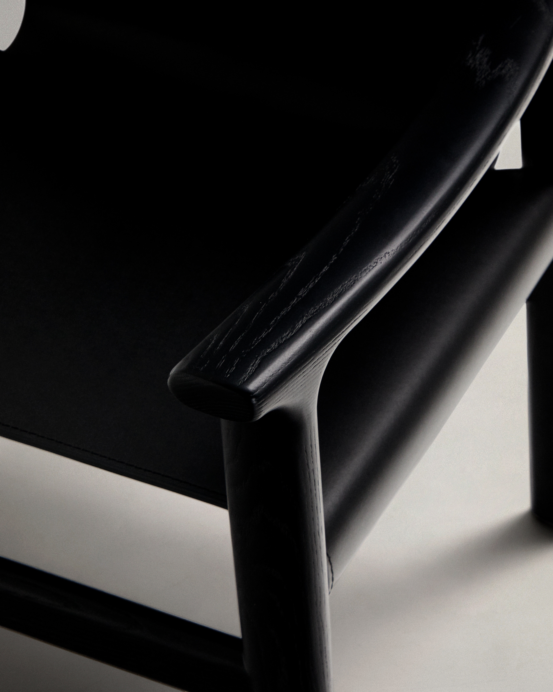 Стул Jan из переработанной кожи черного цвета и ясеня в черном цвете со скидкой 5%