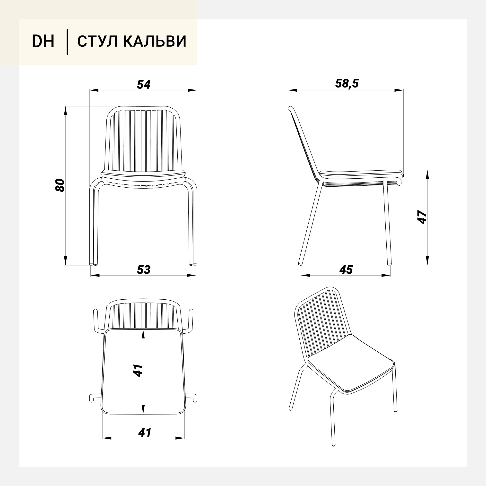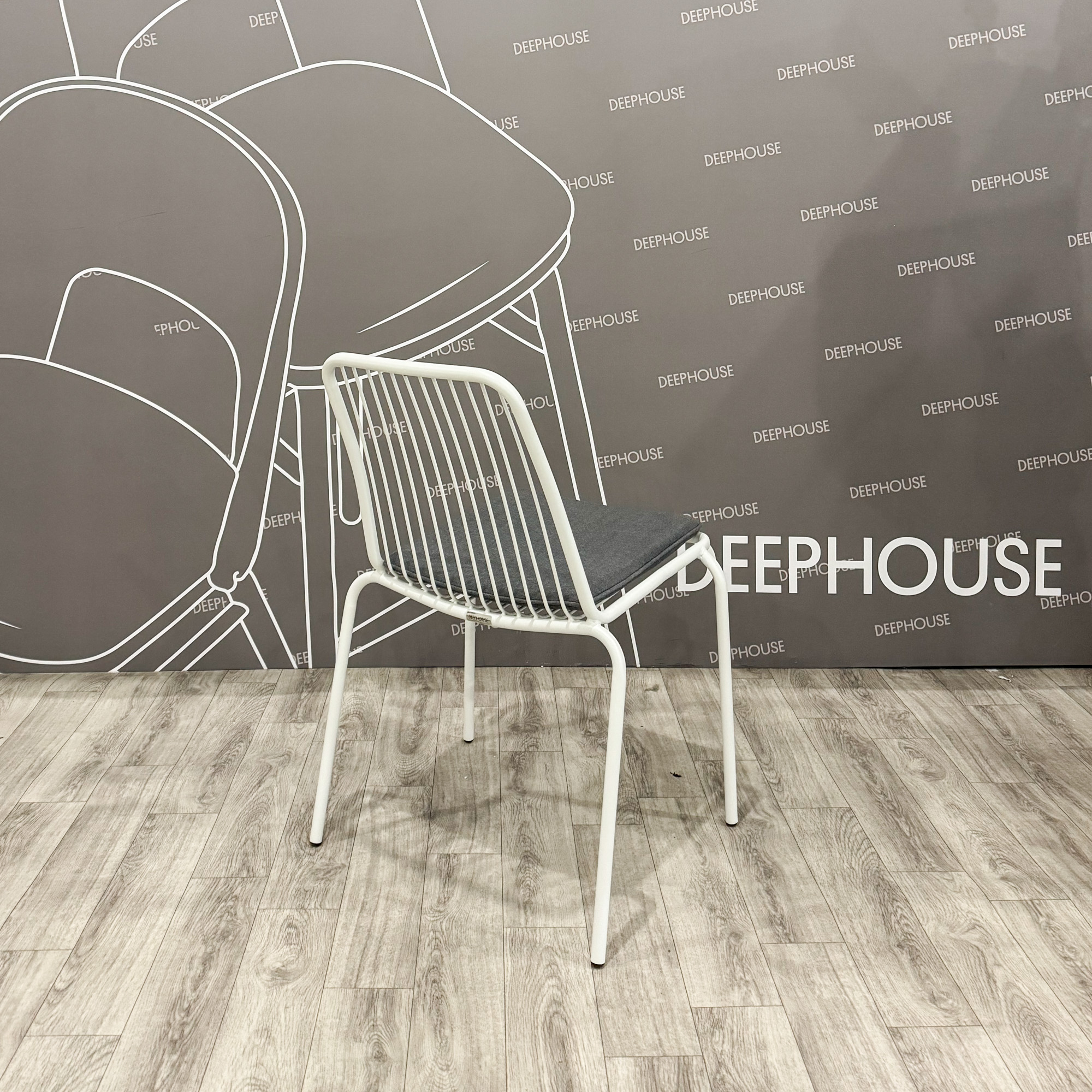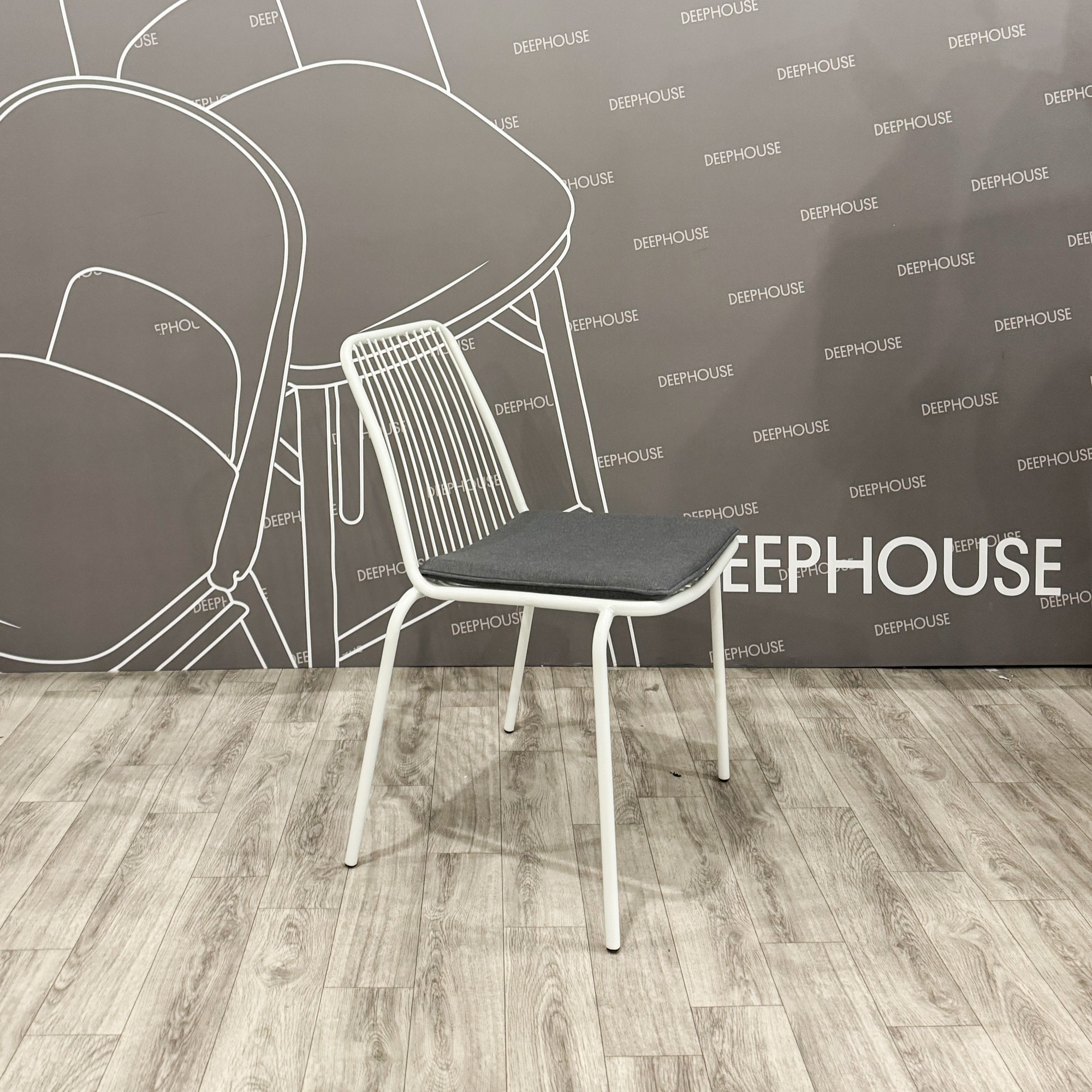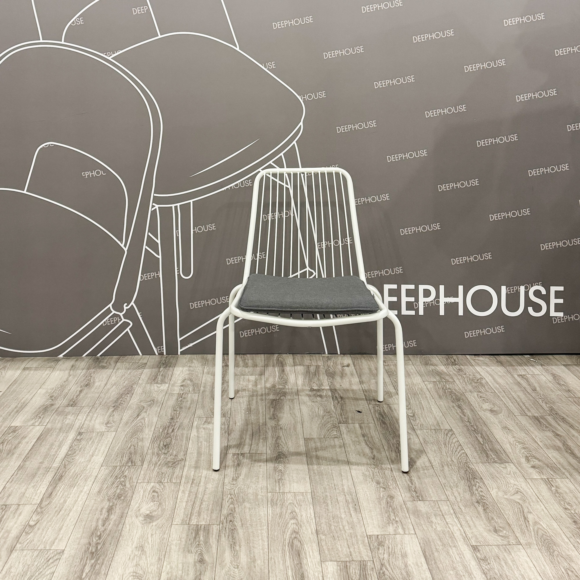 Стул Кальви металлический тон белый подушка серая арт. 61395+61602