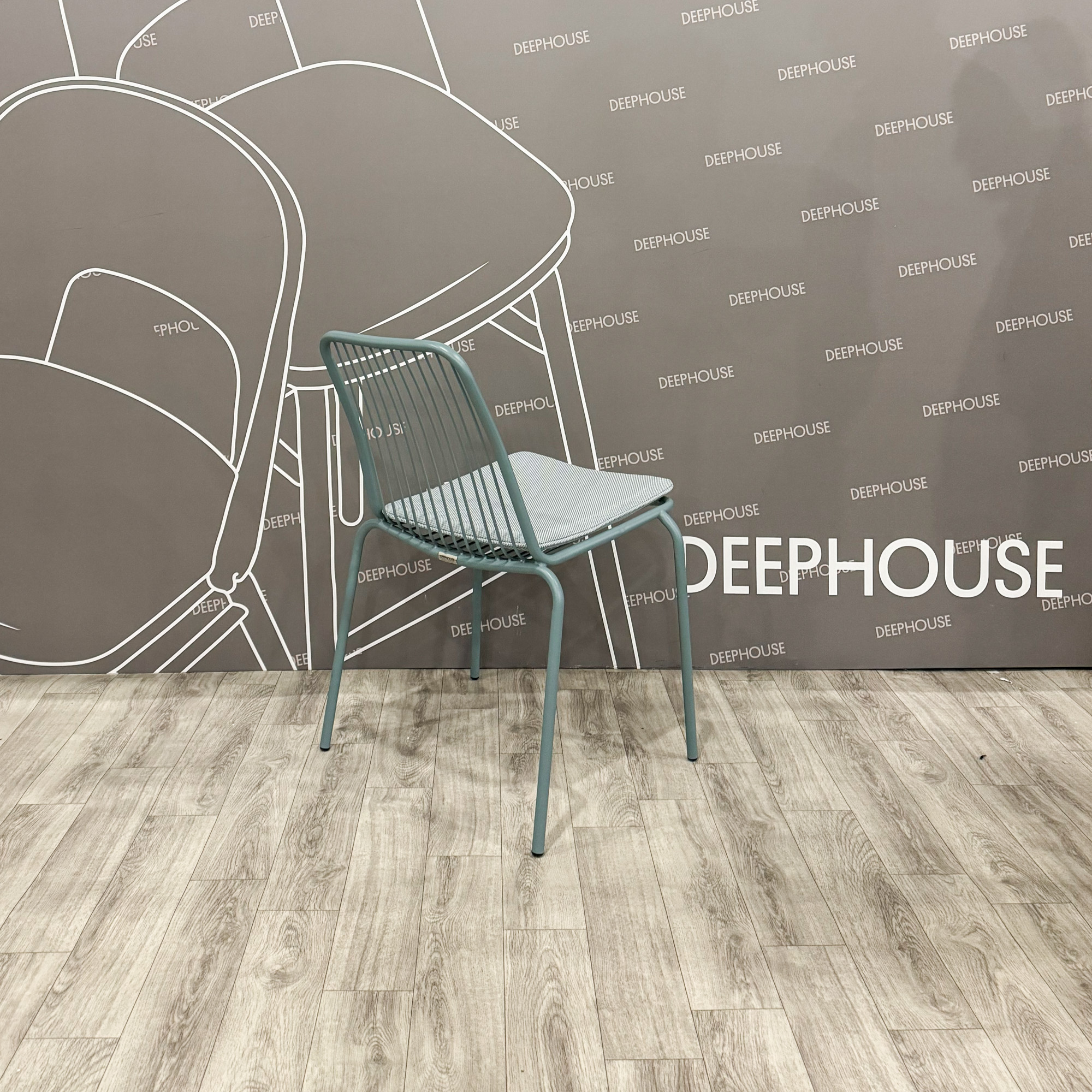 Стул Кальви металлический тон голубой подушка голубая арт. 61397+61604