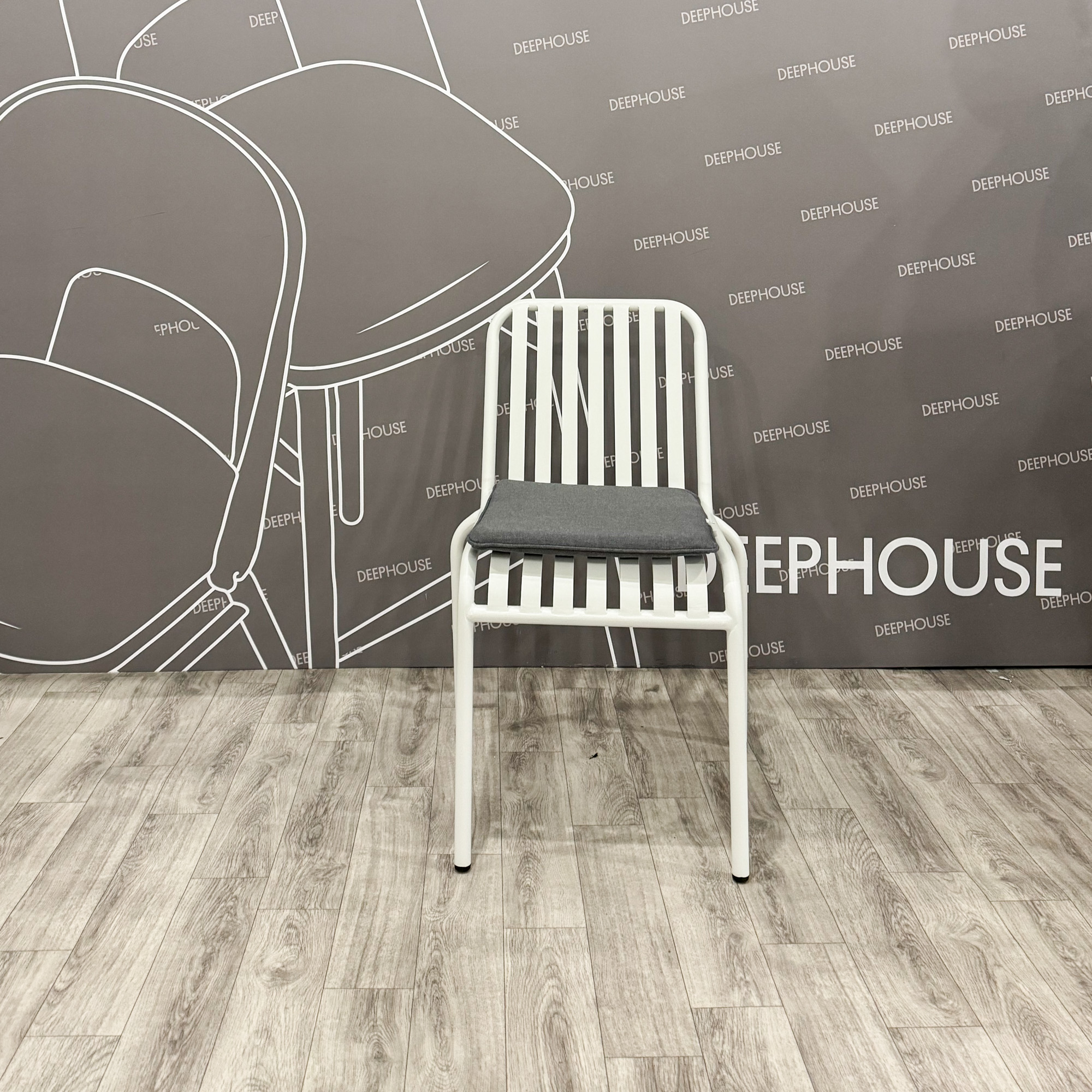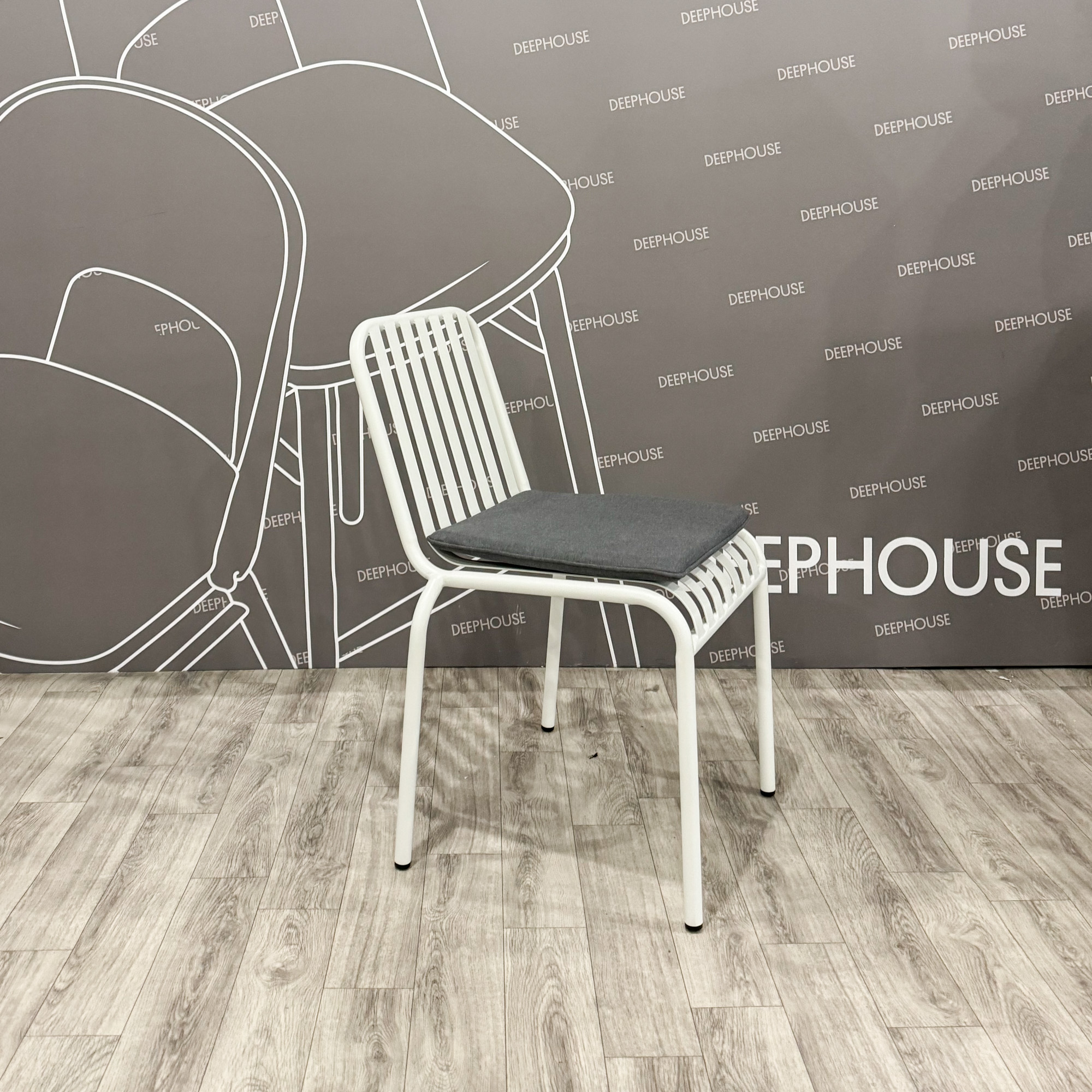 Стул Кальяри металлический тон белый подушка серая со скидкой 43%