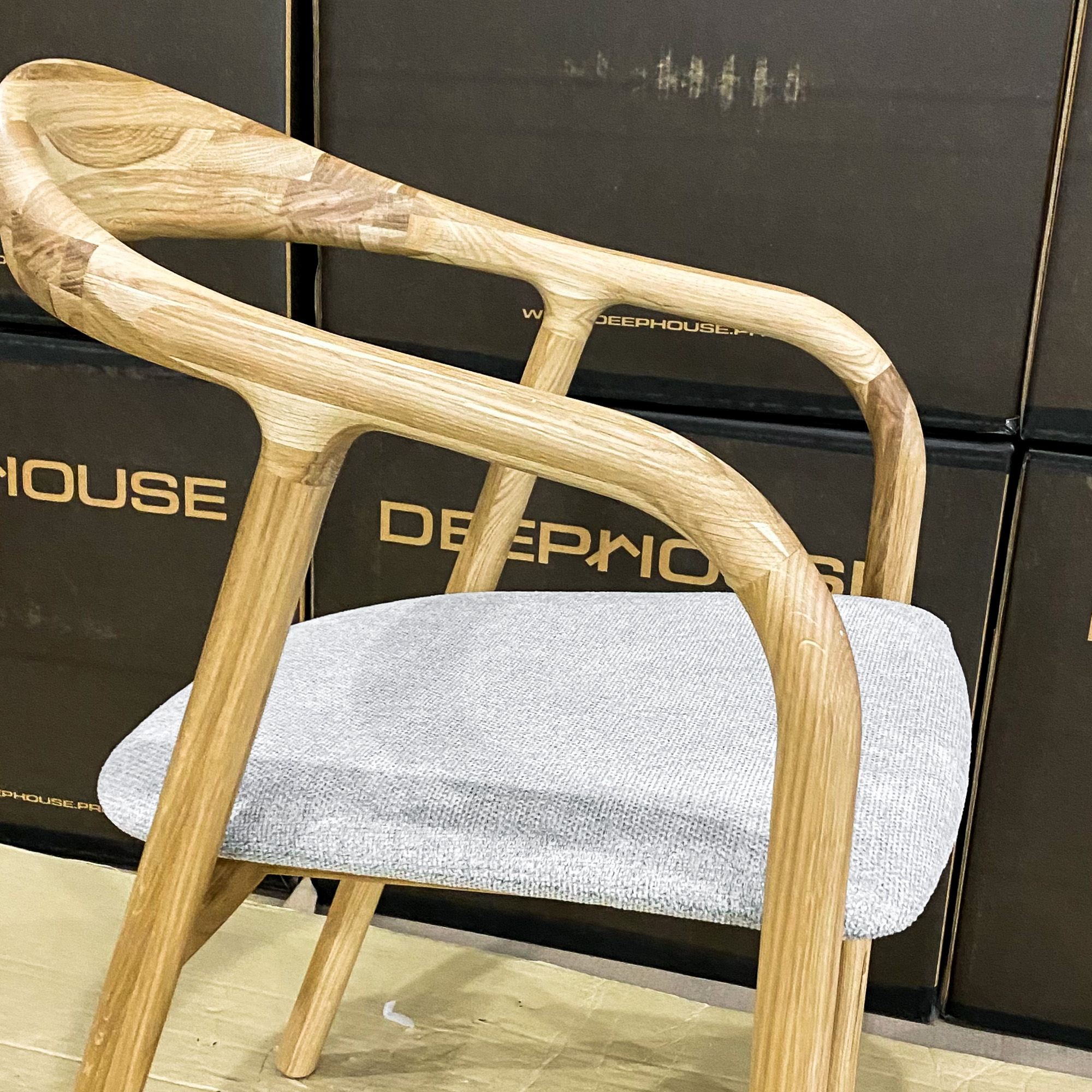 Стул Лугано светло-серая ткань дуб тон натуральный со скидкой 9%