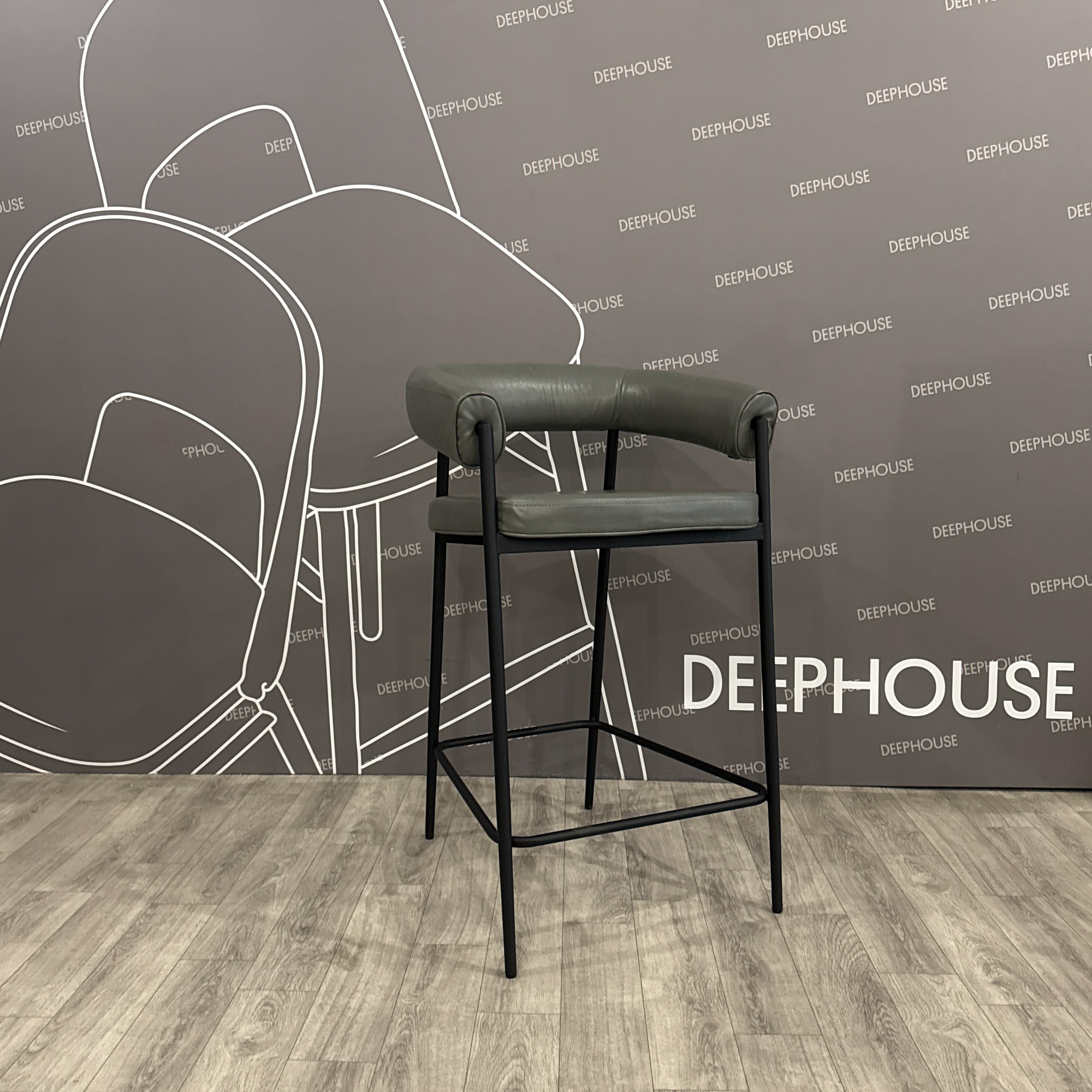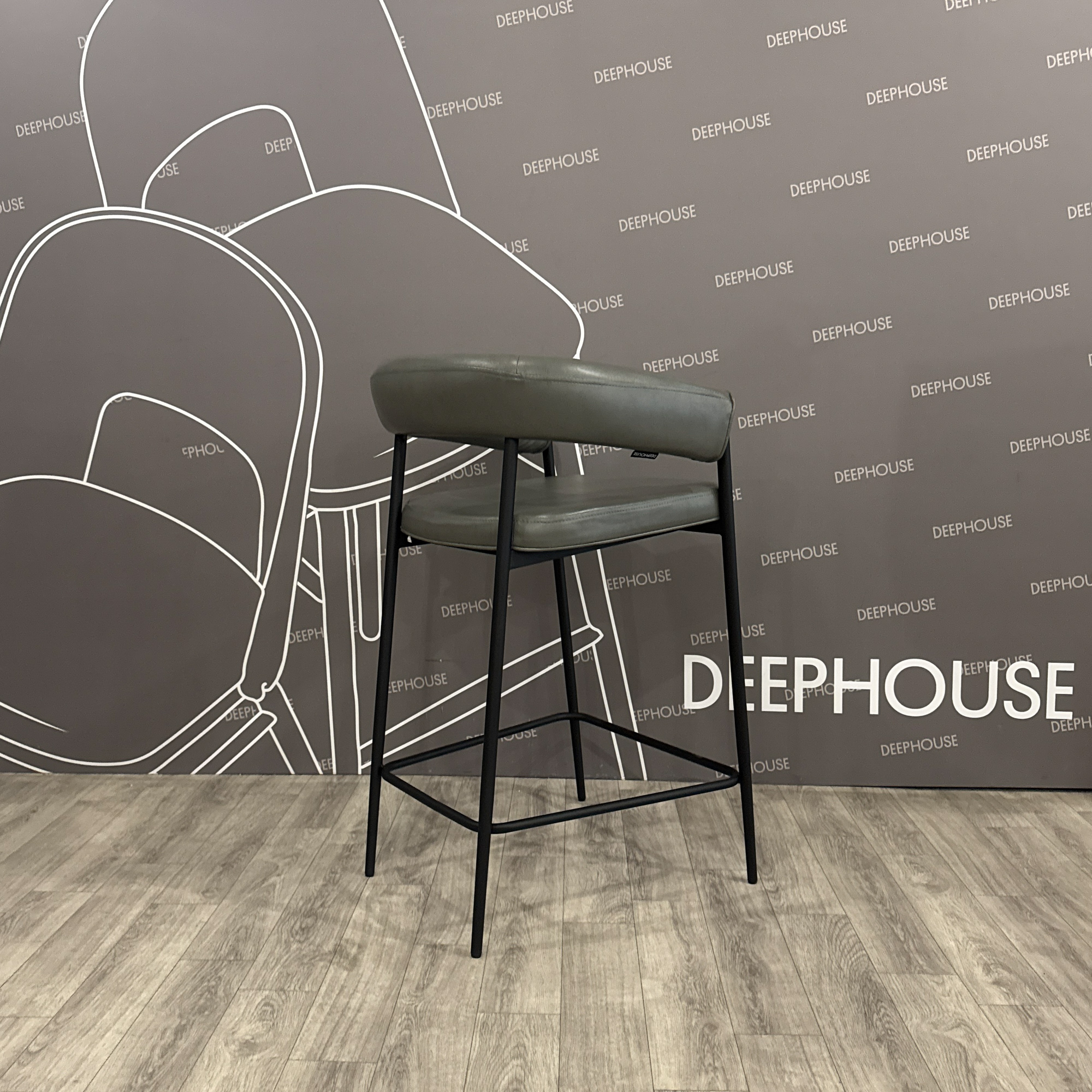 Стул Манчестер полубарный сиденье с наклоном серая экокожа ножки металл черный арт. 63259