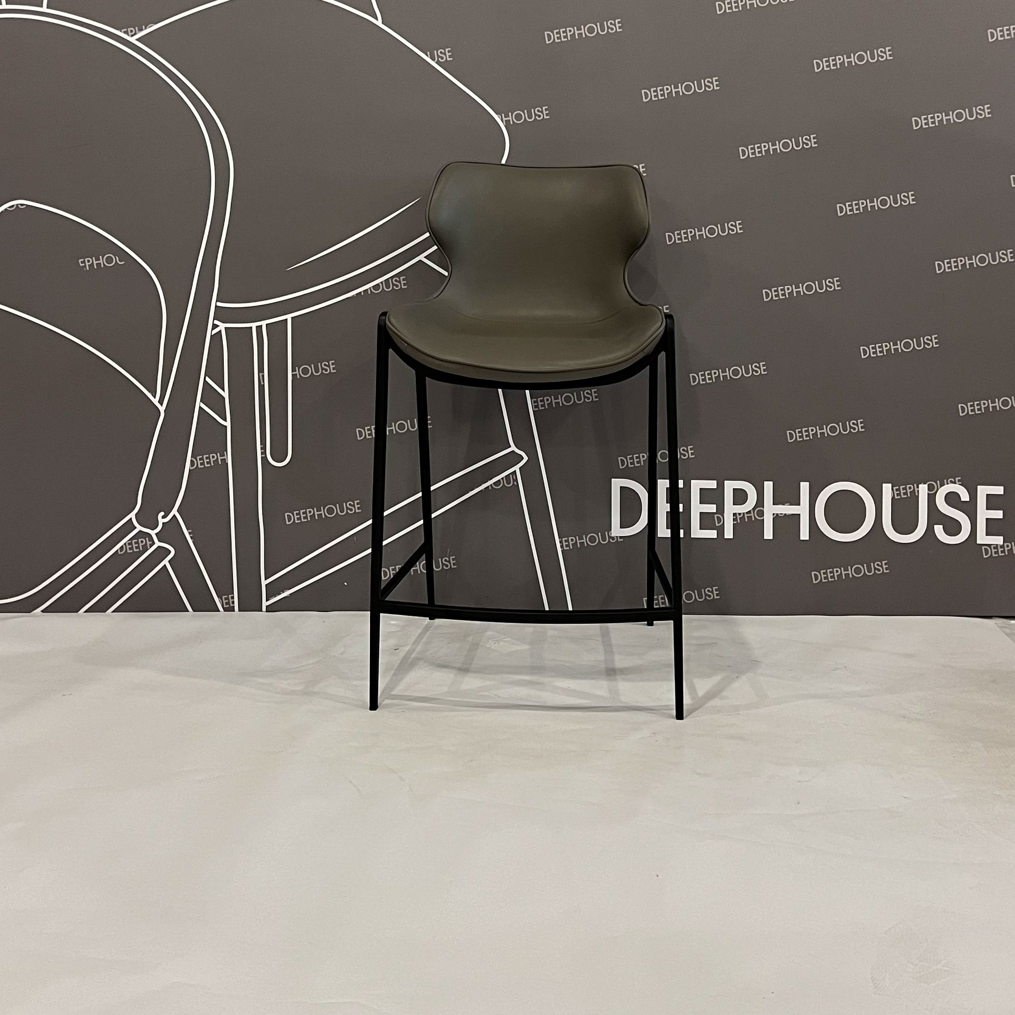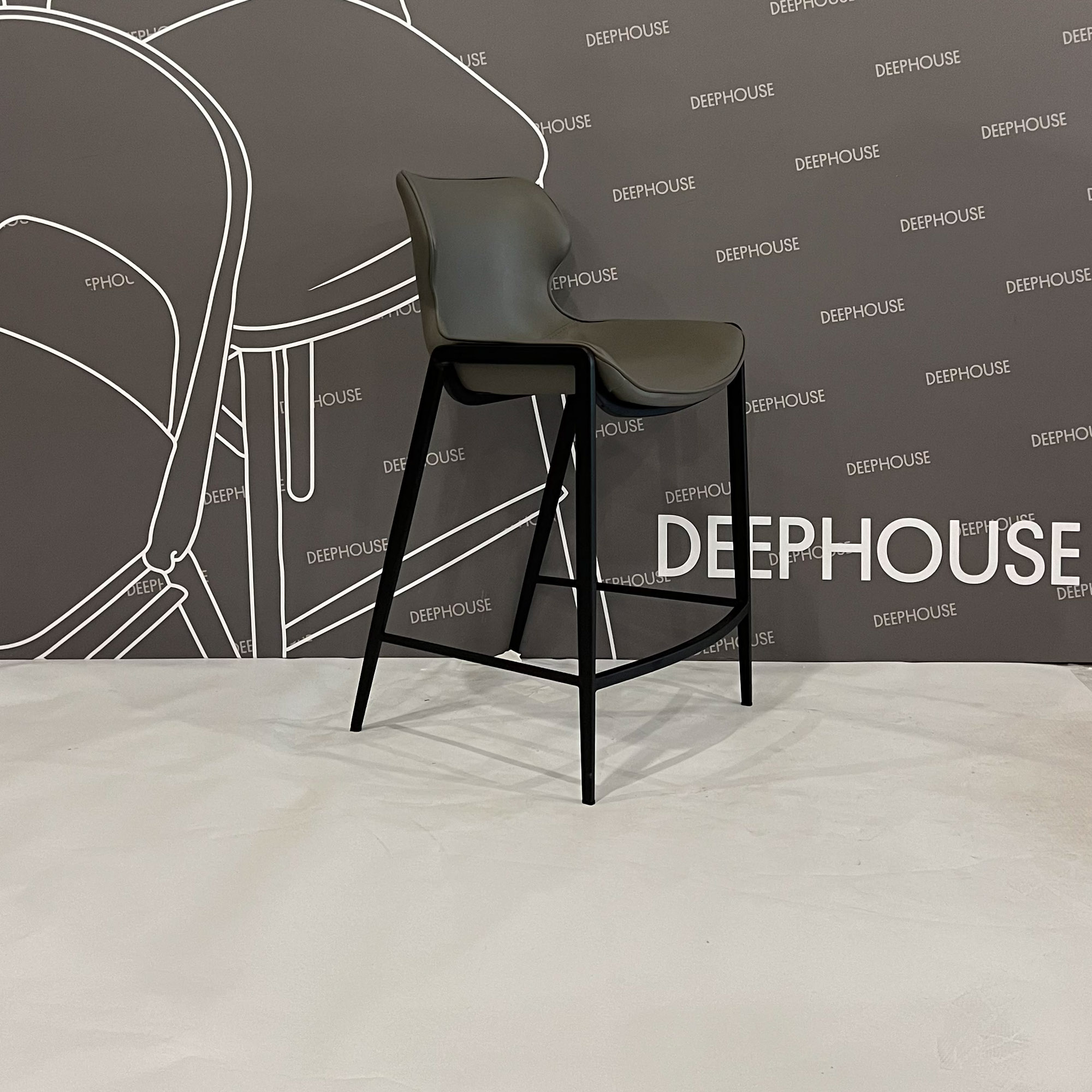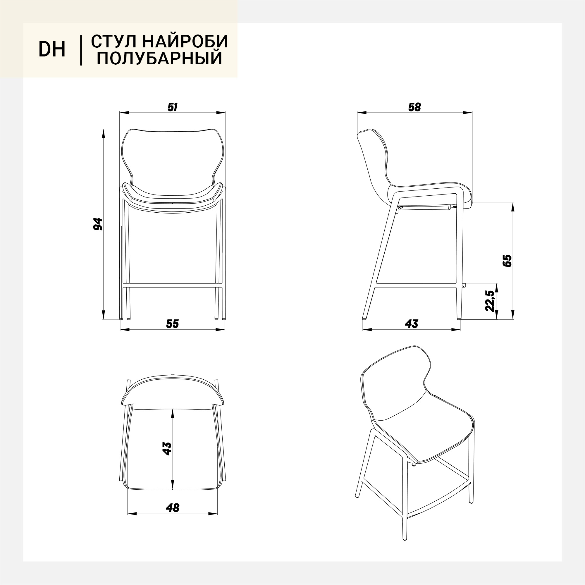 Стул Найроби полубарный без прострочки серая экокожа ножки черные арт. 59983
