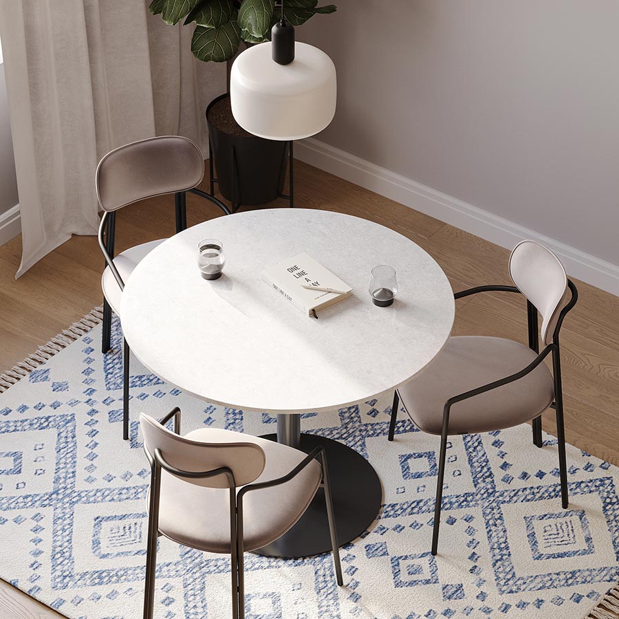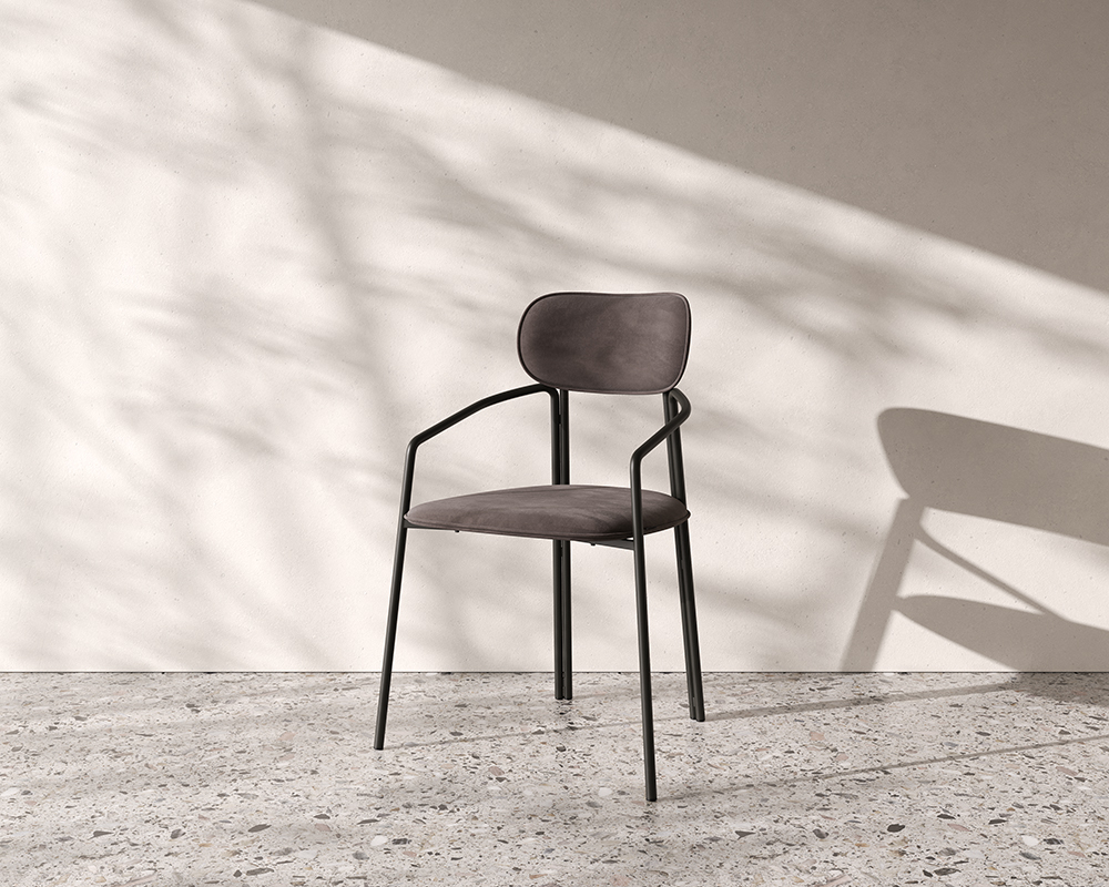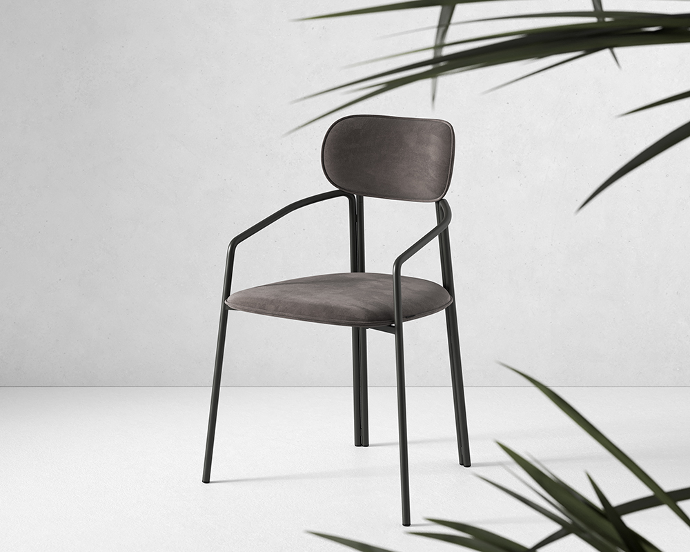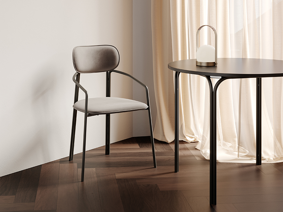 Каркас стула Round состоит из трех элементов, стремящихся вверх, создающих округлый, обвивающий корпус. Отсутствие прямых углов формирует легкий и гармоничный силуэт.