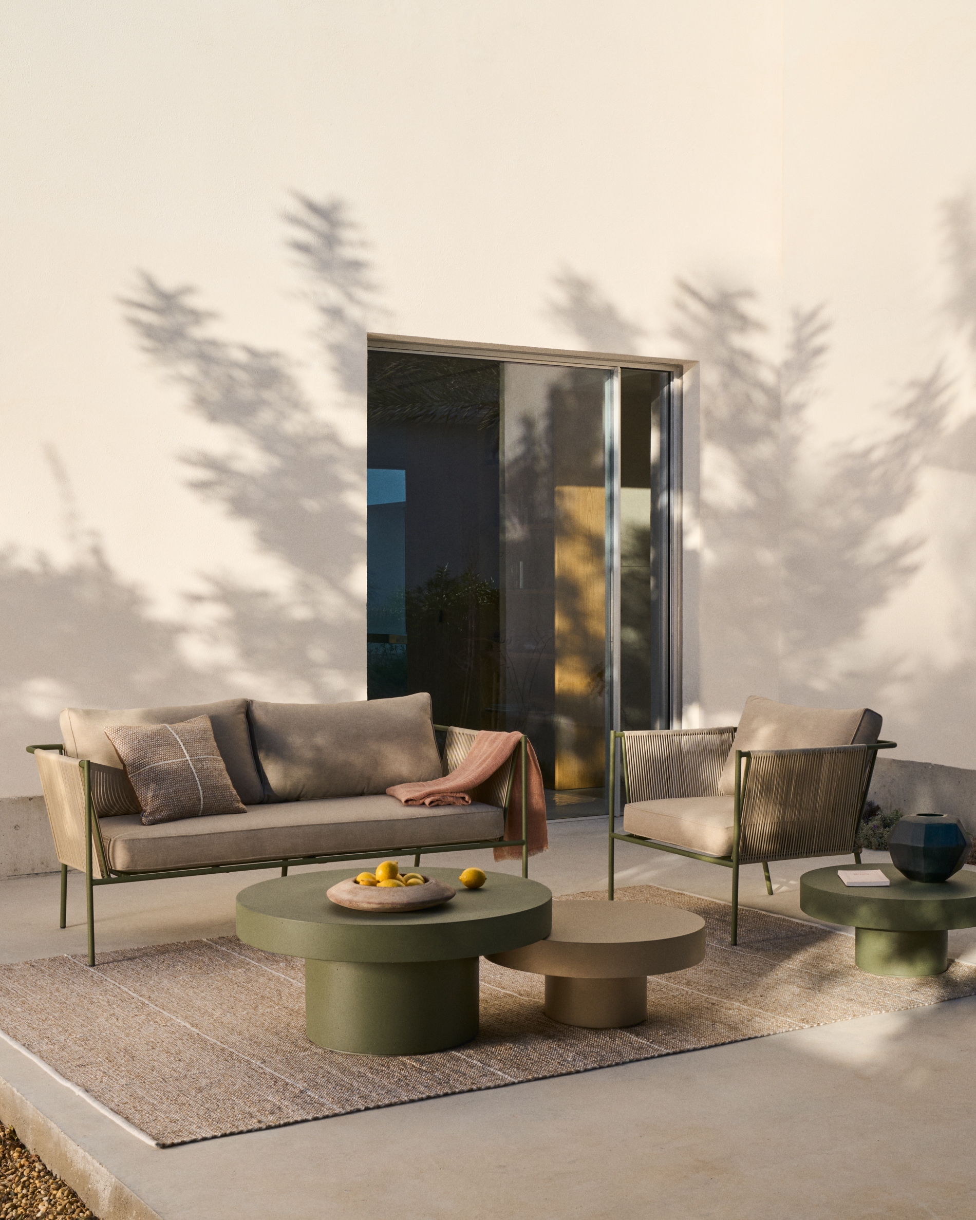 Диван Zivia выполнен из прочной стали зеленого цвета и экологически чистой веревки цвета экрю, что обеспечивает не только долговечность, но и эстетику. Его конструкция выдерживает нагрузку и подходит для размещения на открытом воздухе, что делает его отличным выбором для дачи, террасы или патио.