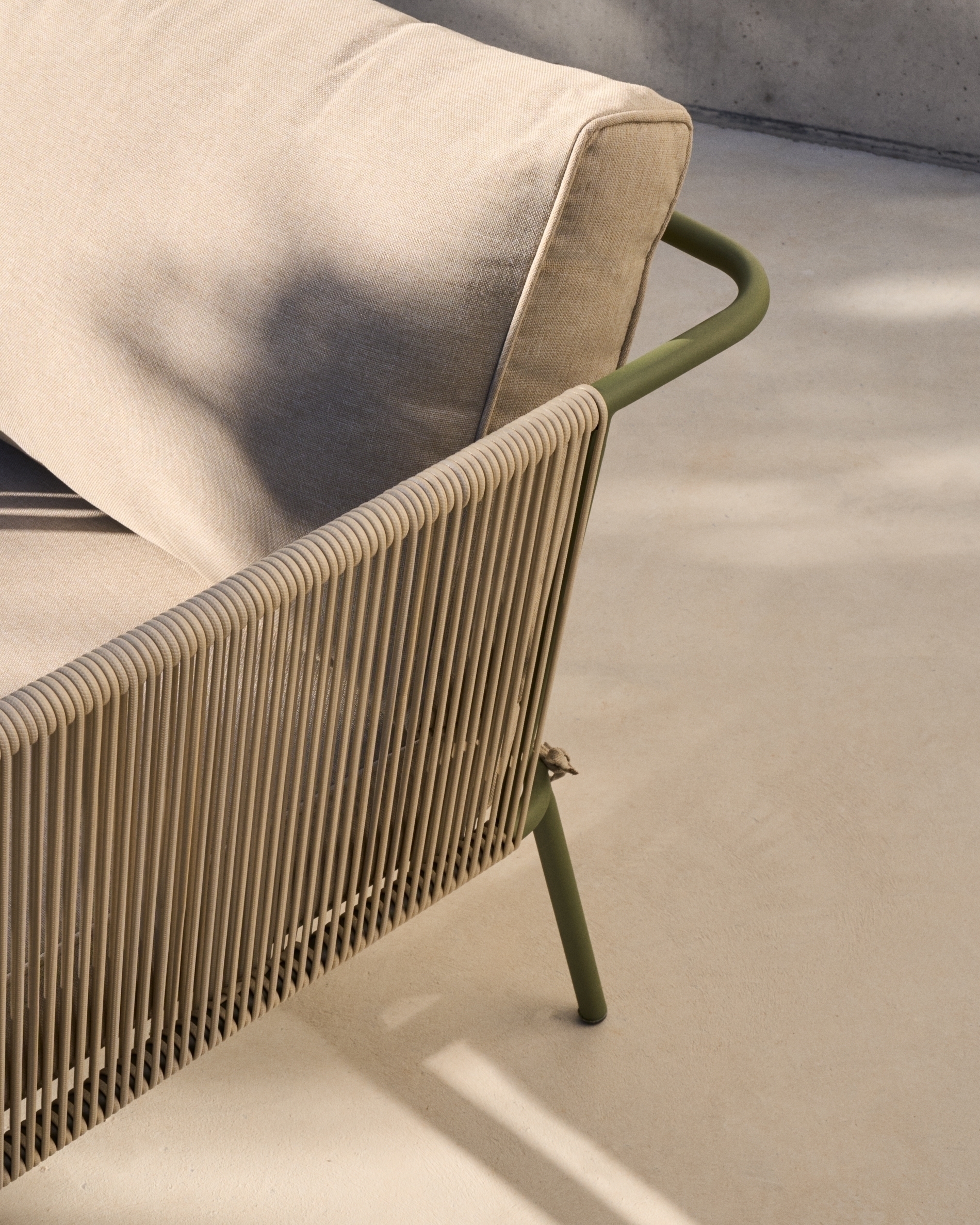 Уличный 2-х местный диван Zivia из веревки цвета экрю и стали зеленого цвета арт. 254524